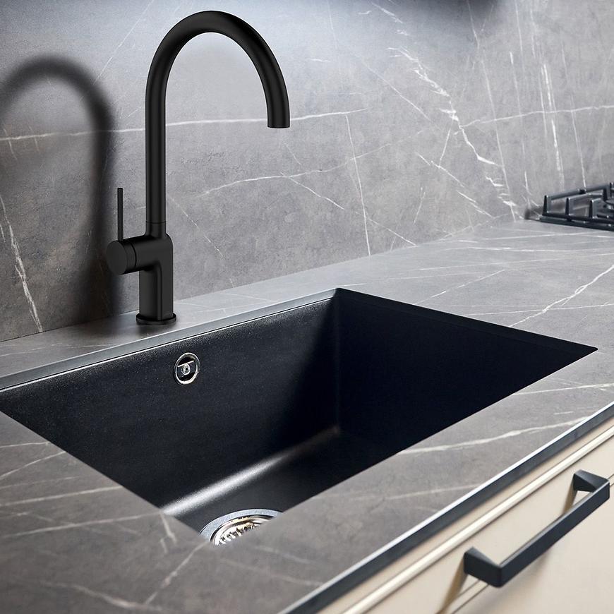 Bateria zlewozmywakowa Kalitea w kolorze czarnego matu to doskonałe uzupełnienie serii baterii łazienkowych o tej samej nazwie. Dzięki temu można uzyskać spójną stylistykę we wszystkich pomieszczeniach domu. Oto kluczowe cechy tej baterii kuchennej: