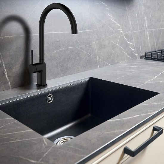 Bateria zlewozmywakowa Kalitea w kolorze czarnego matu to propozycja dla osób poszukujących funkcjonalnego i stylowego rozwiązania do nowoczesnej kuchni.
