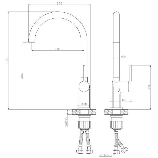 Nowoczesny design: Bateria kuchenna utrzymana jest w nowoczesnym stylu, doskonale wpisując się w trendy dominujące we wnętrzarstwie. Kolor czarnego matu nadaje jej elegancji i sprawia, że staje się dekoracyjnym elementem kuchni.
