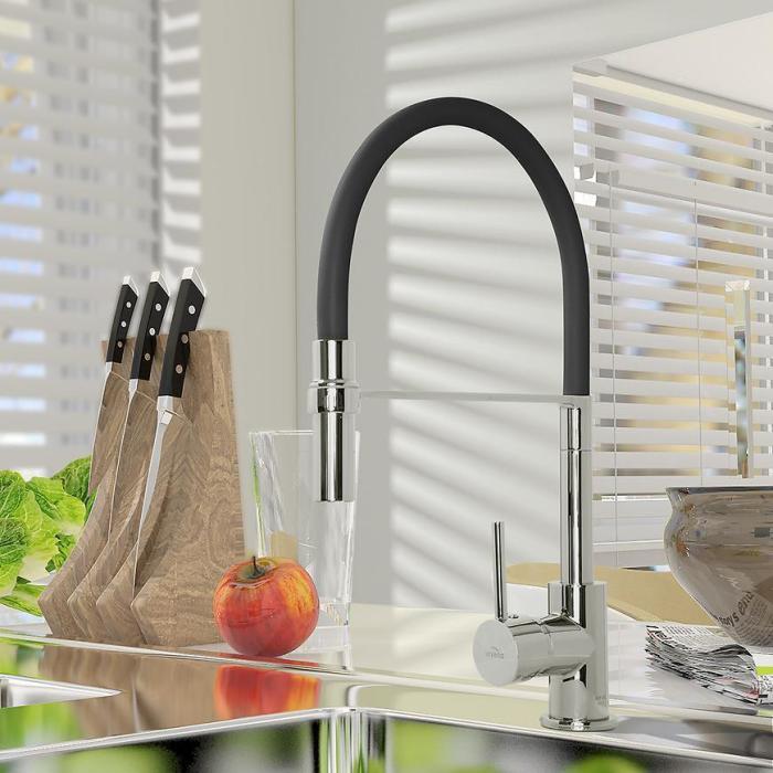 Bateria to jeden z podstawowych elementów wyposażenia kuchni. Bateria zlewozmywakowa Kameleon wykonana w kolorze chromu i czarnym jest praktyczna i funkcjonalna. Przypadnie do gustu każdemu kto lubi gotować i spędzać czas w kuchni. Na uwagę zasługuje fakt, że posiada obrotową, ruchomą wylewkę, która dodatkowo wpłynie na komfort użytkowania.