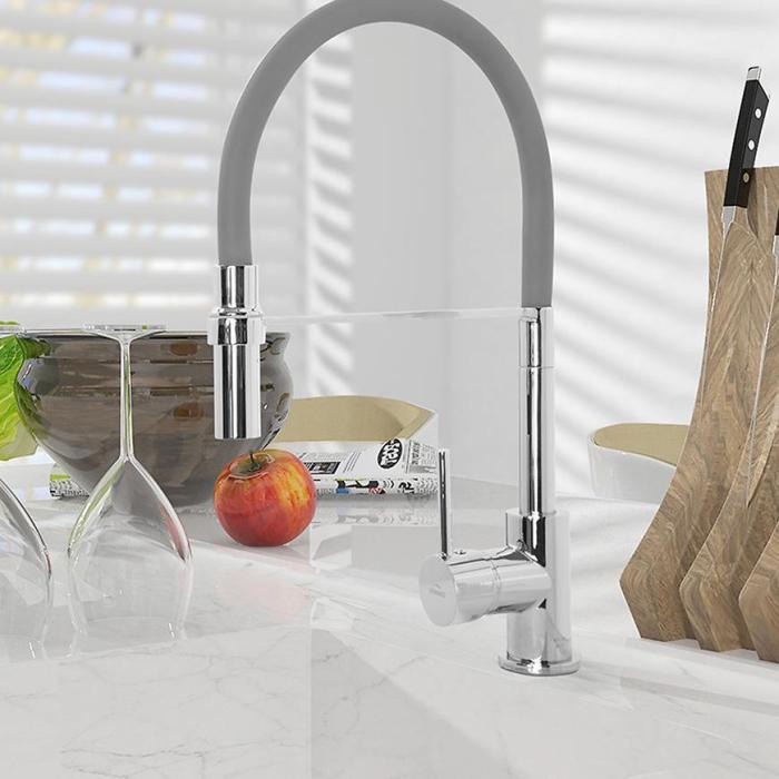 Bateria to jeden z podstawowych elementów wyposażenia kuchni. Bateria zlewozmywakowa Kameleon wykonana w kolorze chromu i szarym jest praktyczna i funkcjonalna. Przypadnie do gustu każdemu kto lubi gotować i spędzać czas w kuchni. Na uwagę zasługuje fakt, że posiada obrotową, ruchomą wylewkę, która dodatkowo wpłynie na komfort użytkowania.