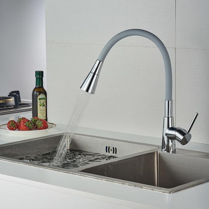 Bateria Lambada w srebrnym kolorze łączy nowoczesny wygląd z wysoką funkcjonalnością. Elastyczna wylewka umożliwia swobodne mycie naczyń i dopasowanie strumienia wody do potrzeb użytkownika.