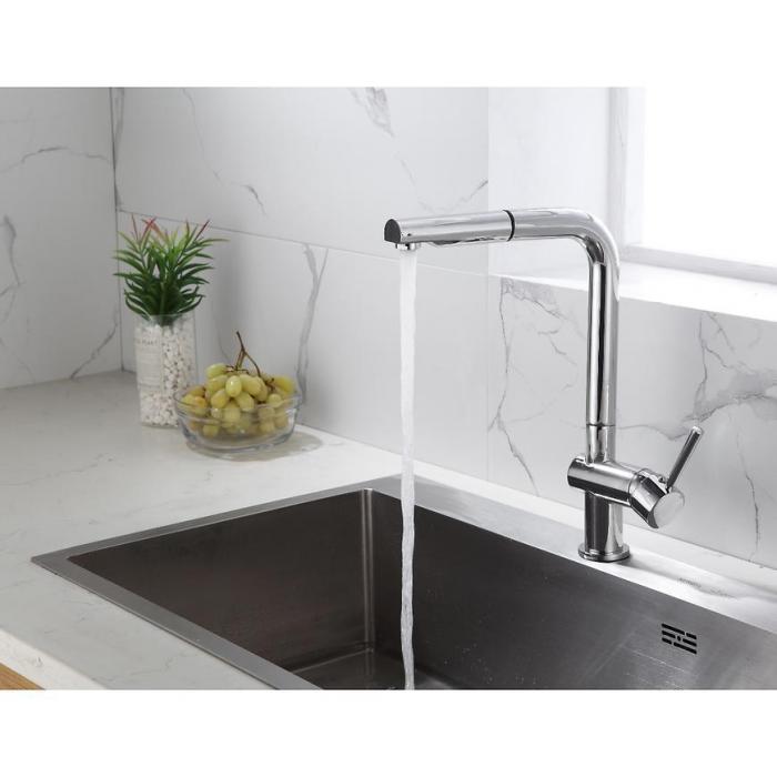 Bateria Malta W/W w kolorze chrom to połączenie nowoczesnego designu i funkcjonalności. Wyciągana i obrotowa wylewka umożliwia komfortowe mycie naczyń oraz napełnianie dużych garnków, a wysokość 35,4 cm zapewnia wygodę użytkowania.