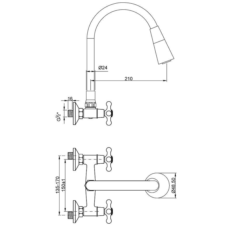 Ta bateria kuchenna została specjalnie zaprojektowana dla kuchni ze ściennej instalacją wodnej. Wykorzystany materiał to solidny mosiądz, co gwarantuje trwałość i niezawodność. Czarno-chromowy kolor nadaje baterii elegancji i subtelności.
