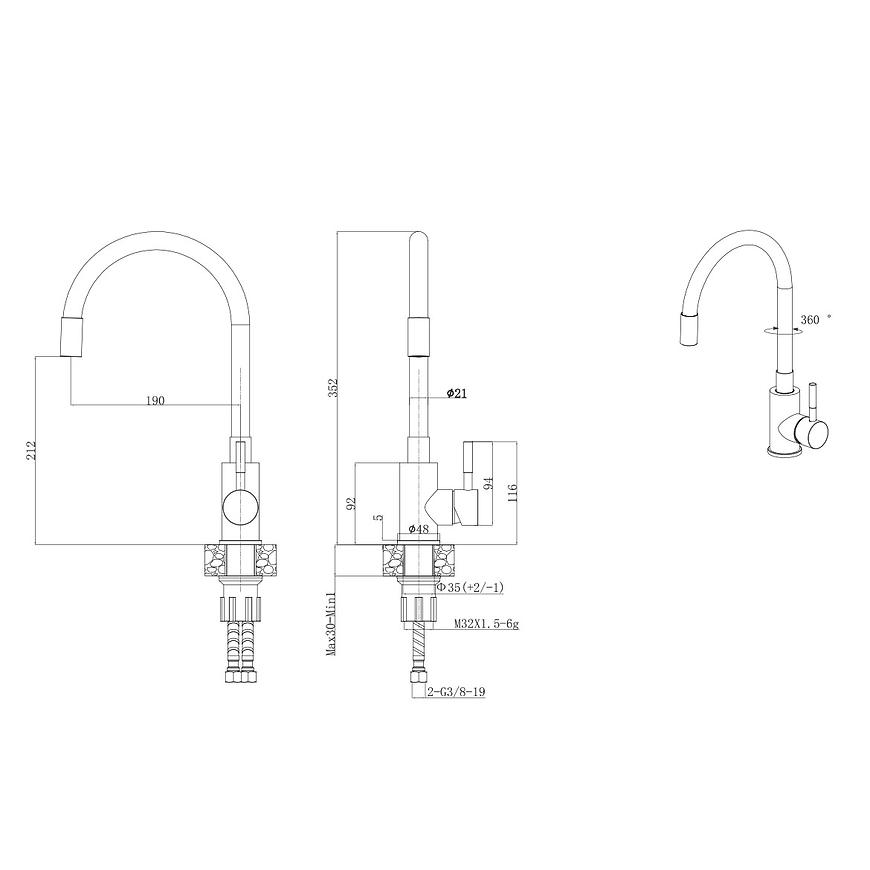 Materiał wykonania baterii to mosiądz i ocynk, co gwarantuje trwałość i odporność na korozję, a także zachowuje jej estetyczny wygląd na długie lata. Perlator M22x1 umożliwia równomierne rozprowadzanie wody i oszczędność jej zużycia.
