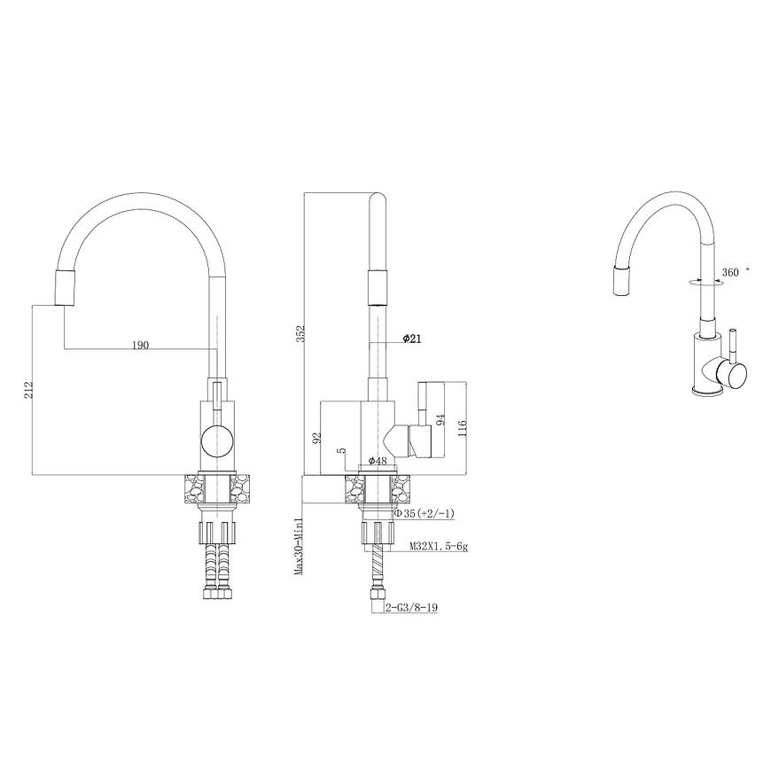 Materiał wykonania baterii to mosiądz i ocynk, co gwarantuje trwałość i odporność na korozję, a także zachowuje jej estetyczny wygląd na długie lata. Perlator M22x1 umożliwia równomierne rozprowadzanie wody i oszczędność jej zużycia.