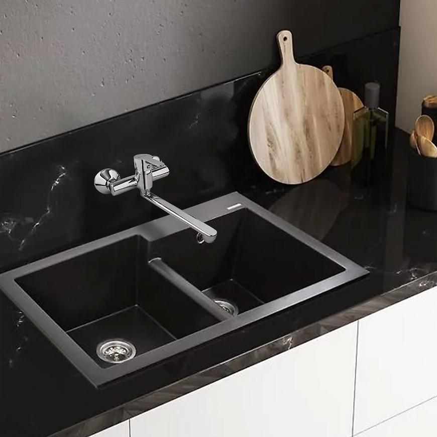 Bateria zlewozmywakowa ścienna Granat wykonana z solidnego mosiądzu i wykończona w lśniącym kolorze chromu, nie tylko zachwyca swoim wyglądem, ale także zapewnia niezawodność przez wiele lat użytkowania. Grupa akustyczna II potwierdza, że praca baterii jest cicha i komfortowa, niezależnie od natężenia przepływu wody.