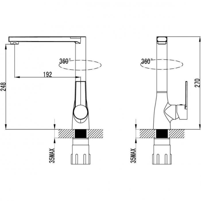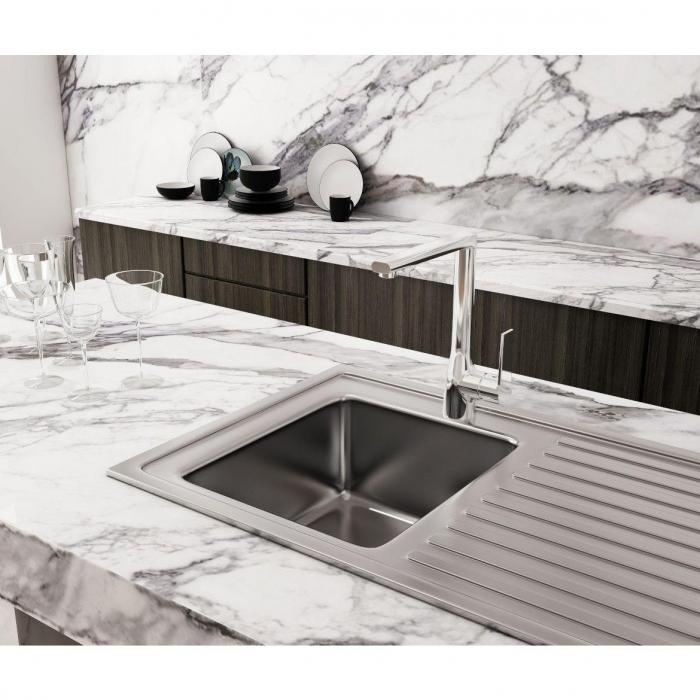 Bateria Hathor w kolorze chrom łączy stylowy wygląd z praktycznym zastosowaniem. Ruchoma wylewka ułatwia mycie naczyń i napełnianie garnków, a jednootworowy montaż stojący sprawia, że instalacja jest szybka i wygodna.