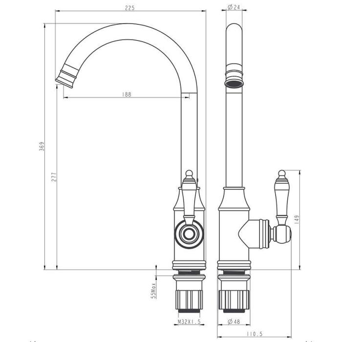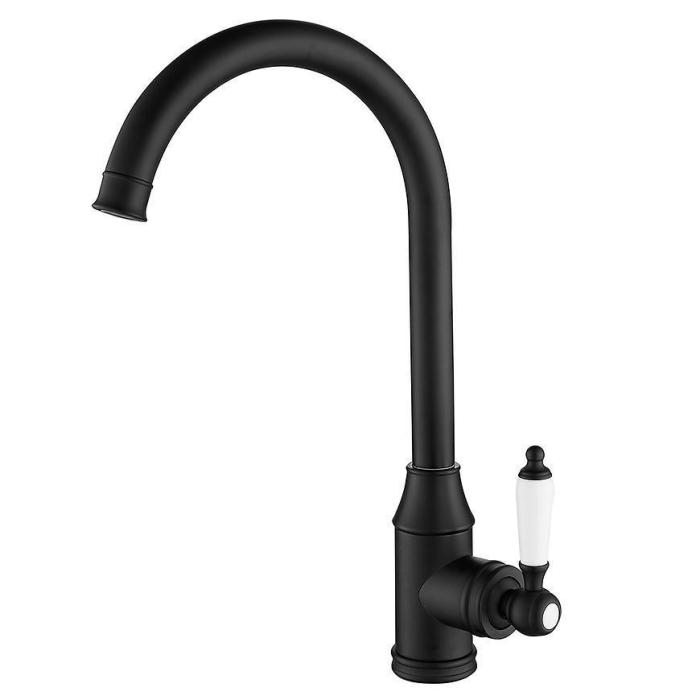 Bateria Retro w kolorze czarnym to połączenie nowoczesnej funkcjonalności z klasycznym designem. Jej wysoka, obrotowa wylewka w kształcie „U” ułatwia komfortowe użytkowanie i mycie naczyń, nawet dużych garnków.