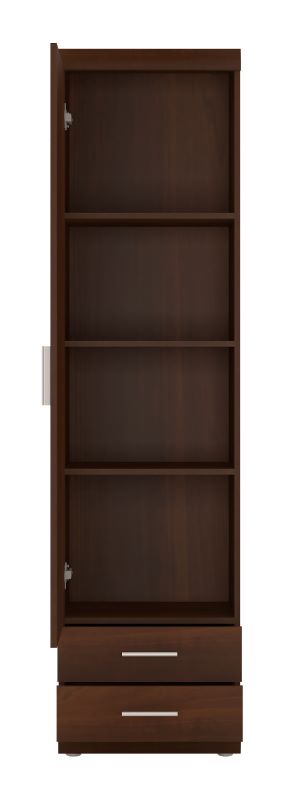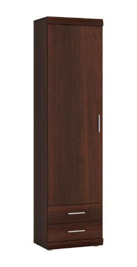 Imperial dostępny jest w głębokim, klasycznym odcieniu orzecha imperial, który nadaje meblom elegancki, lekko rustykalny wygląd. Całość została uzupełniona ozdobnymi frontami z zaokrągloną listwą MDF, co dodaje bryłom subtelnej dekoracyjności i ponadczasowego uroku. Uzupełnieniem są srebrne uchwyty z tworzywa sztucznego, które idealnie kontrastują z ciemną kolorystyką drewna, podkreślając klasyczny styl kolekcji i wprowadzając nowoczesny akcent.
