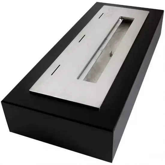 Bio-Wkład kominkowy 36 cm to elegancki biokominek do zabudowy, który pozwala cieszyć się prawdziwym ciepłem i wyjątkową atmosferą, bez konieczności instalowania tradycyjnego komina. Jego nowoczesny design w matowej czerni doskonale sprawdzi się w każdym wnętrzu, tworząc niepowtarzalny klimat.