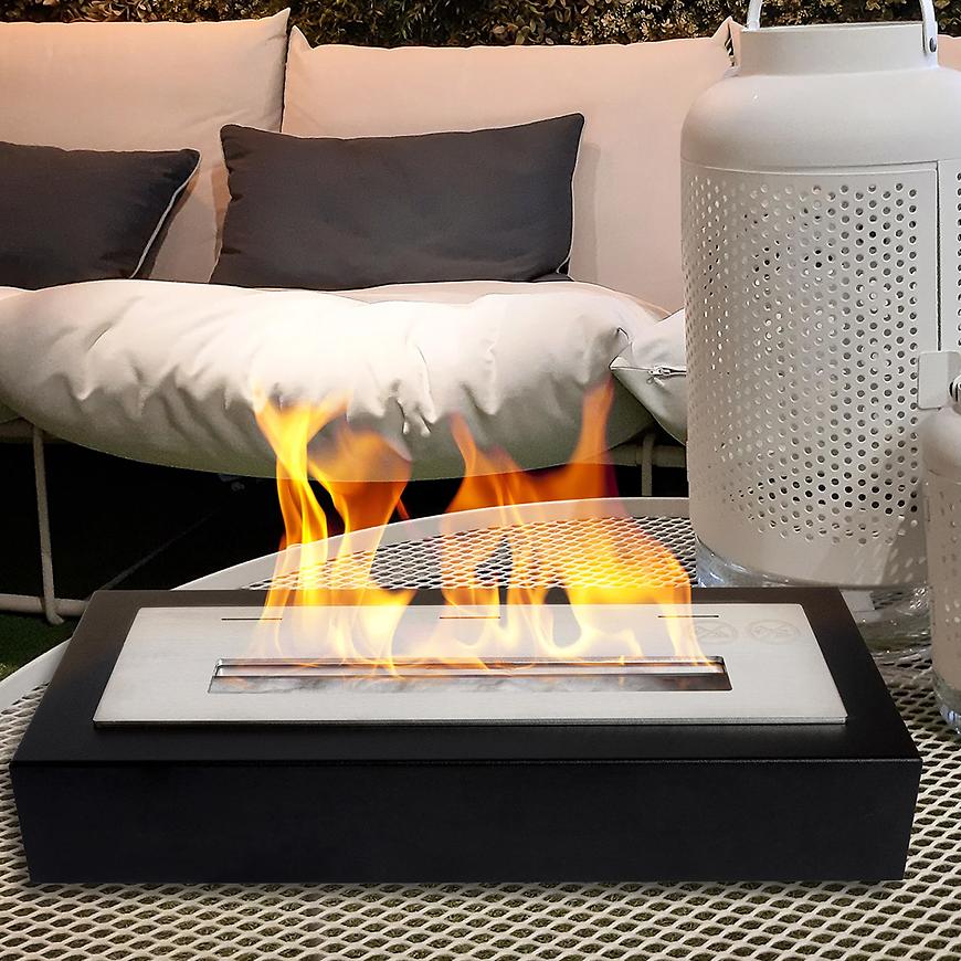 - Bezpieczny i przyjazny dla środowiska – biokominek nie generuje dymu, zapachu, iskier ani popiołu, dzięki czemu może być używany w każdym pomieszczeniu.