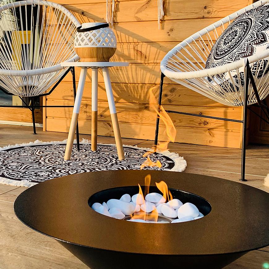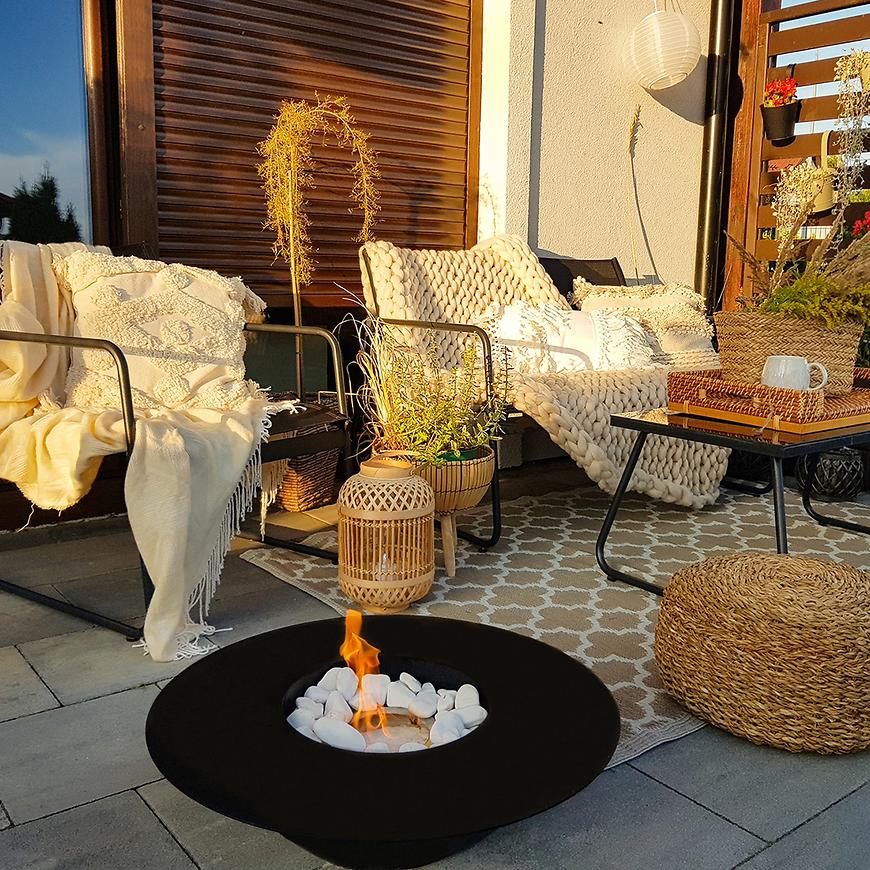 - Łatwy i szybki montaż – biokominek jest gotowy do użytku zaraz po rozpakowaniu, bez potrzeby skomplikowanej instalacji.