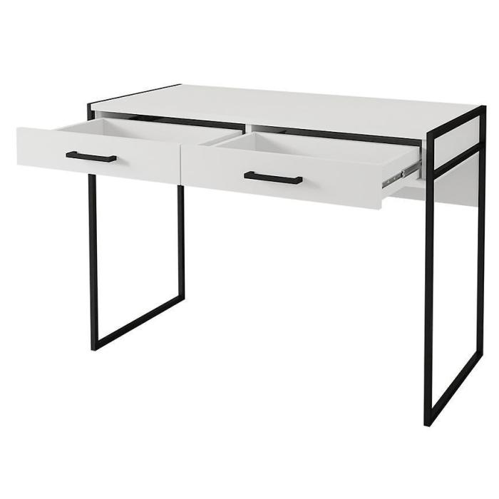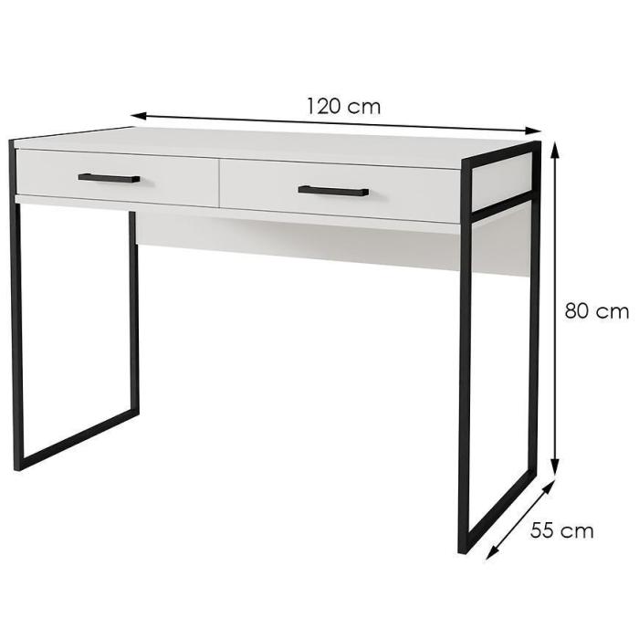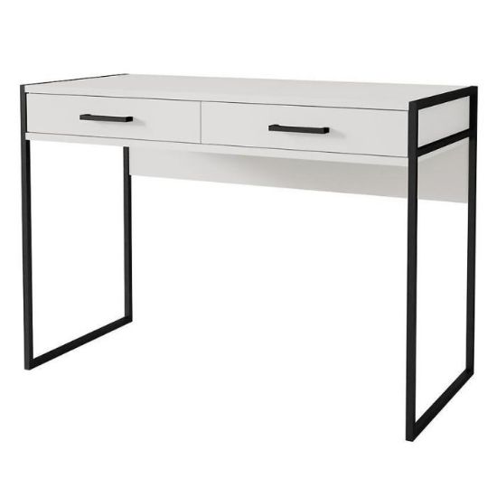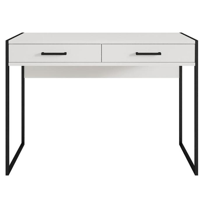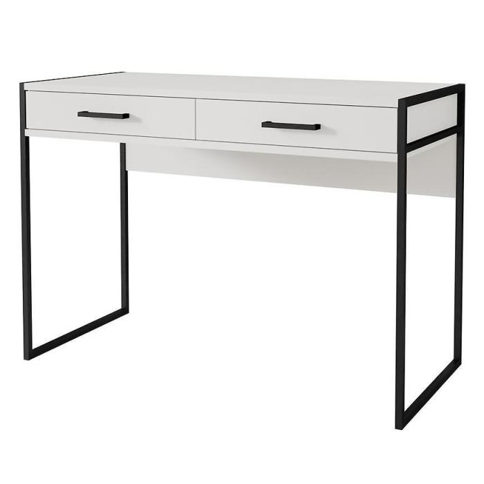 Biurko/toaletka Kammy to praktyczny mebel. Wykonane zostało z płyty wiórowej laminowanej w kolorze białym. Dzięki starannemu wykończeniu posłuży przez wiele lat. Idealnie wpasuje się w nowoczesne wnętrza. Dzięki swojemu wybarwieniu będzie pasować do większości aranżacji. Orientacja: uniwersalne.