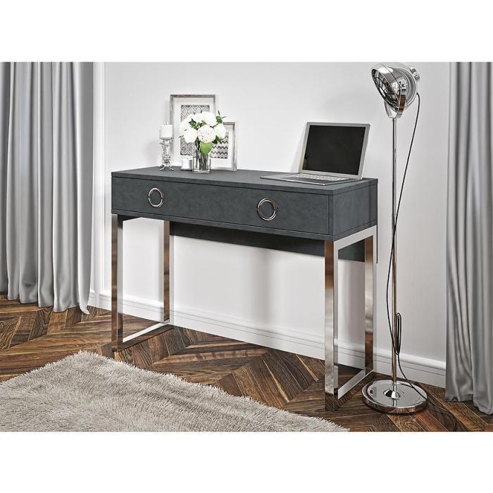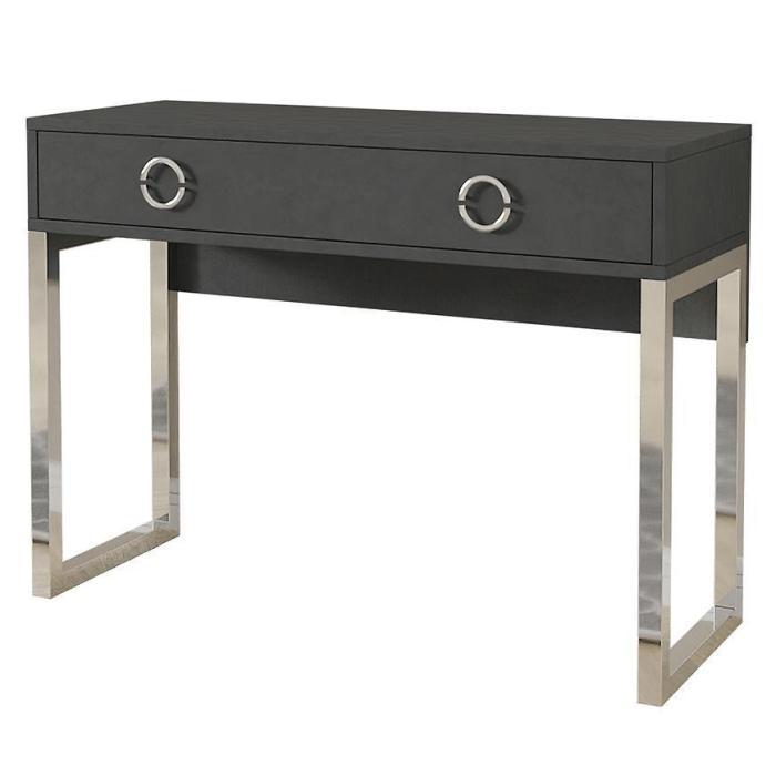 Biurko/toaletka Milla to praktyczny mebel. Wykonane zostało z płyty wiórowej laminowanej w kolorze matera. Dzięki starannemu wykończeniu posłuży przez wiele lat. Idealnie wpasuje się w nowoczesne wnętrza. Dzięki swojemu wybarwieniu będzie pasować do większości aranżacji. Orientacja: uniwersalne.