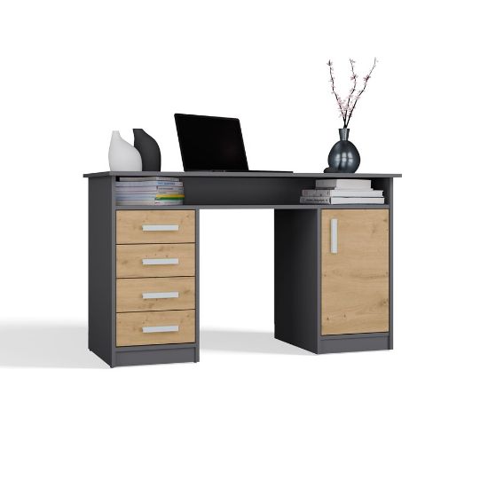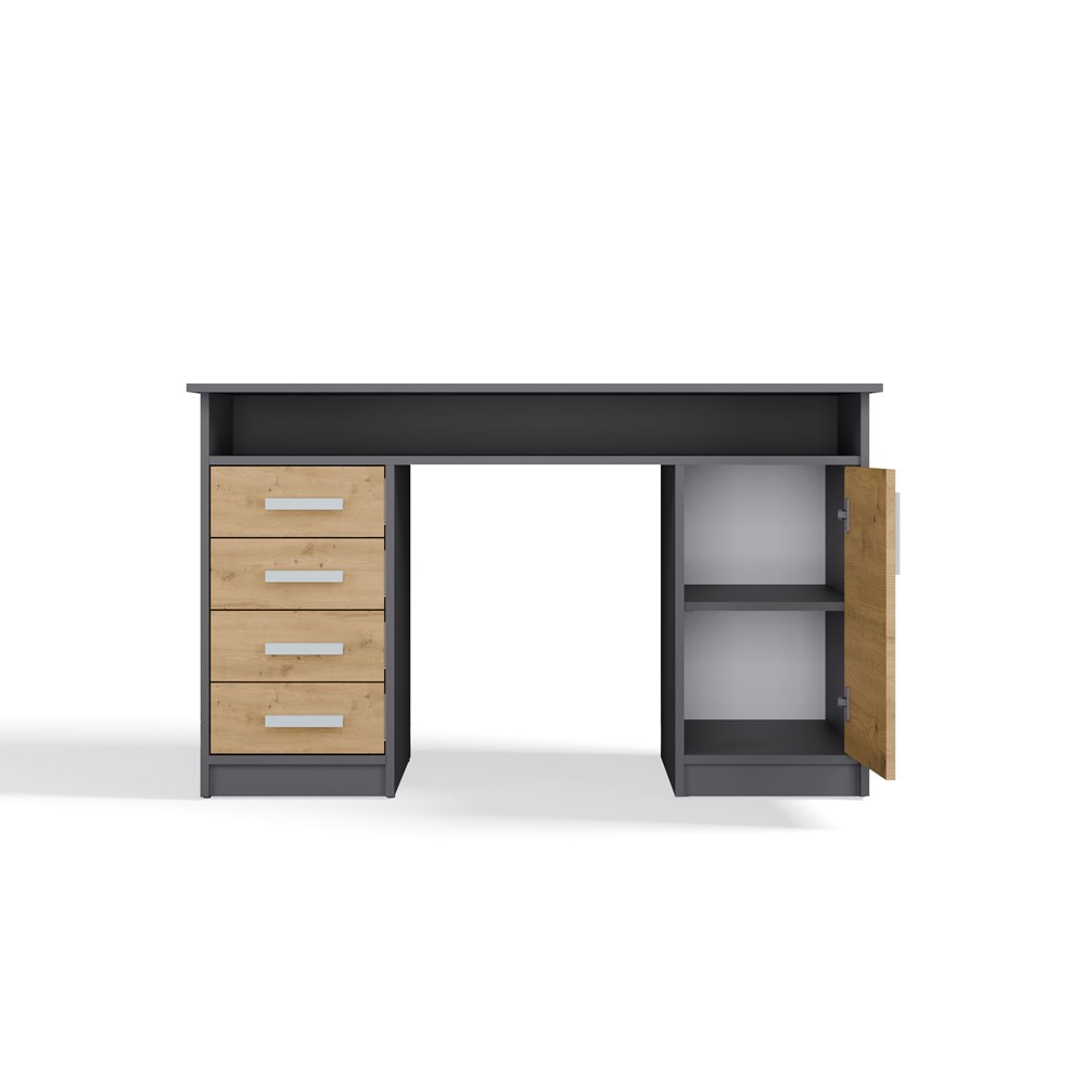 Biurko Adela 125 cm 4S antracyt/dąb artisan – nowoczesne biurko z szufladami do biura i domu