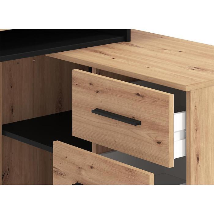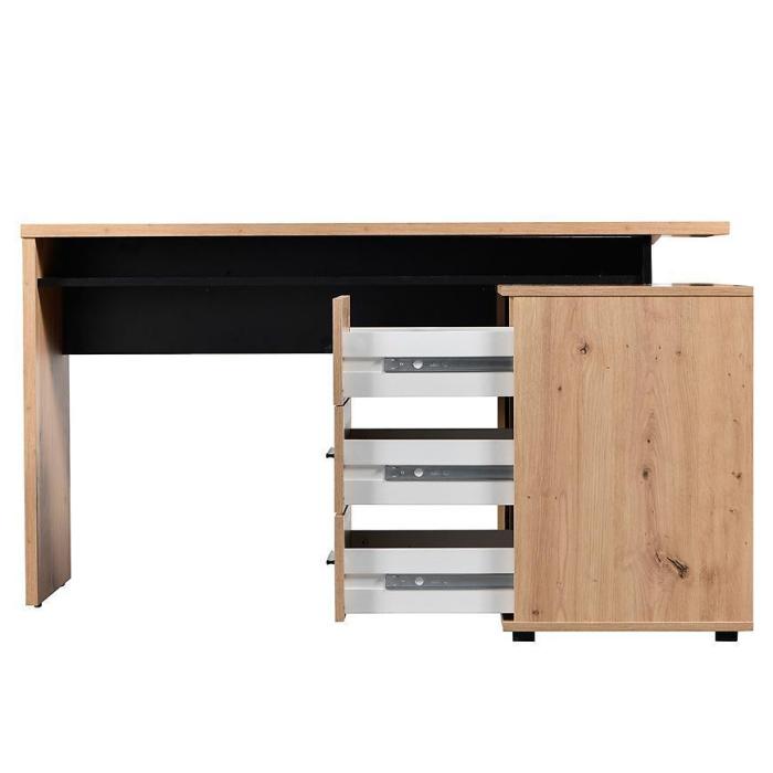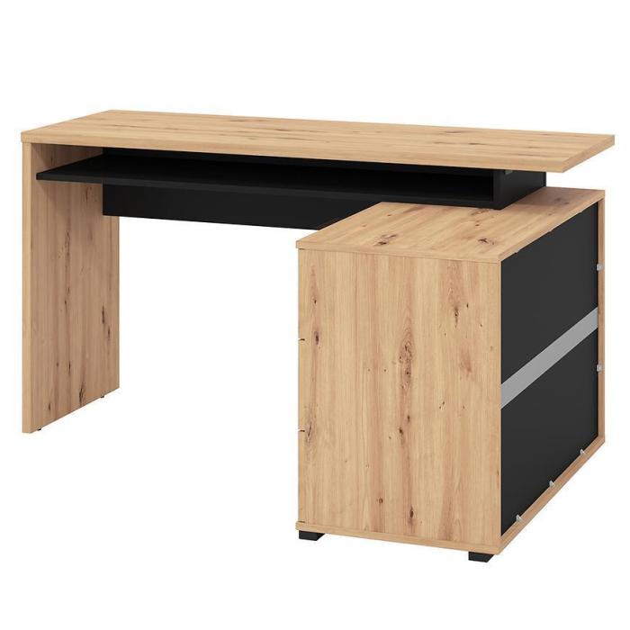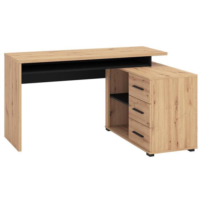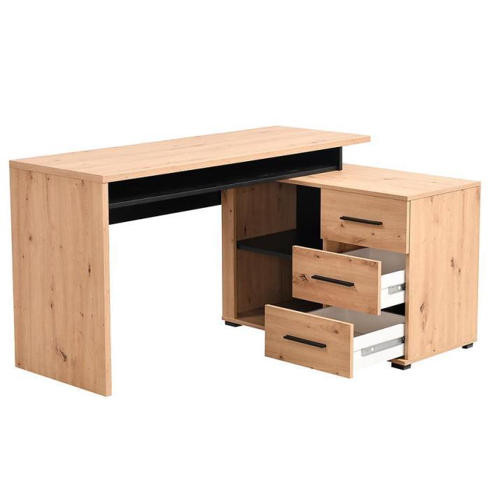 Biurko Arhimed artisan 11008173 łączy w sobie przestronny blat, pojemne szuflady i praktyczną półkę na klawiaturę. Dzięki solidnej konstrukcji z płyty wiórowej laminowanej oraz matowemu wykończeniu, biurko jest trwałe i estetyczne. Elegancki kolor dąb artisan sprawia, że biurko pasuje do różnorodnych wnętrz, a jego wymiary zapewniają wygodną przestrzeń do pracy, nauki i codziennego użytkowania. Idealne do domowego biura, gabinetu oraz pokoju młodzieżowego.