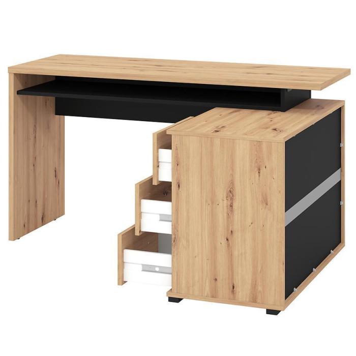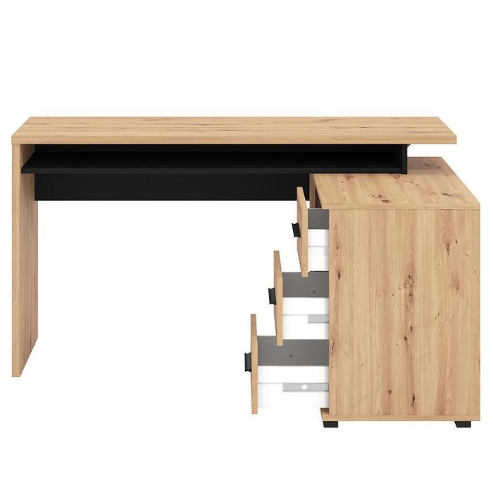 Biurko Arhimed wyposażono w trzy pojemne szuflady, które pozwalają utrzymać porządek w dokumentach, przyborach biurowych i innych akcesoriach. Dodatkowo biurko posiada wysuwaną półkę na klawiaturę, co zwiększa komfort pracy przy komputerze i zapewnia ergonomiczne ułożenie dłoni.