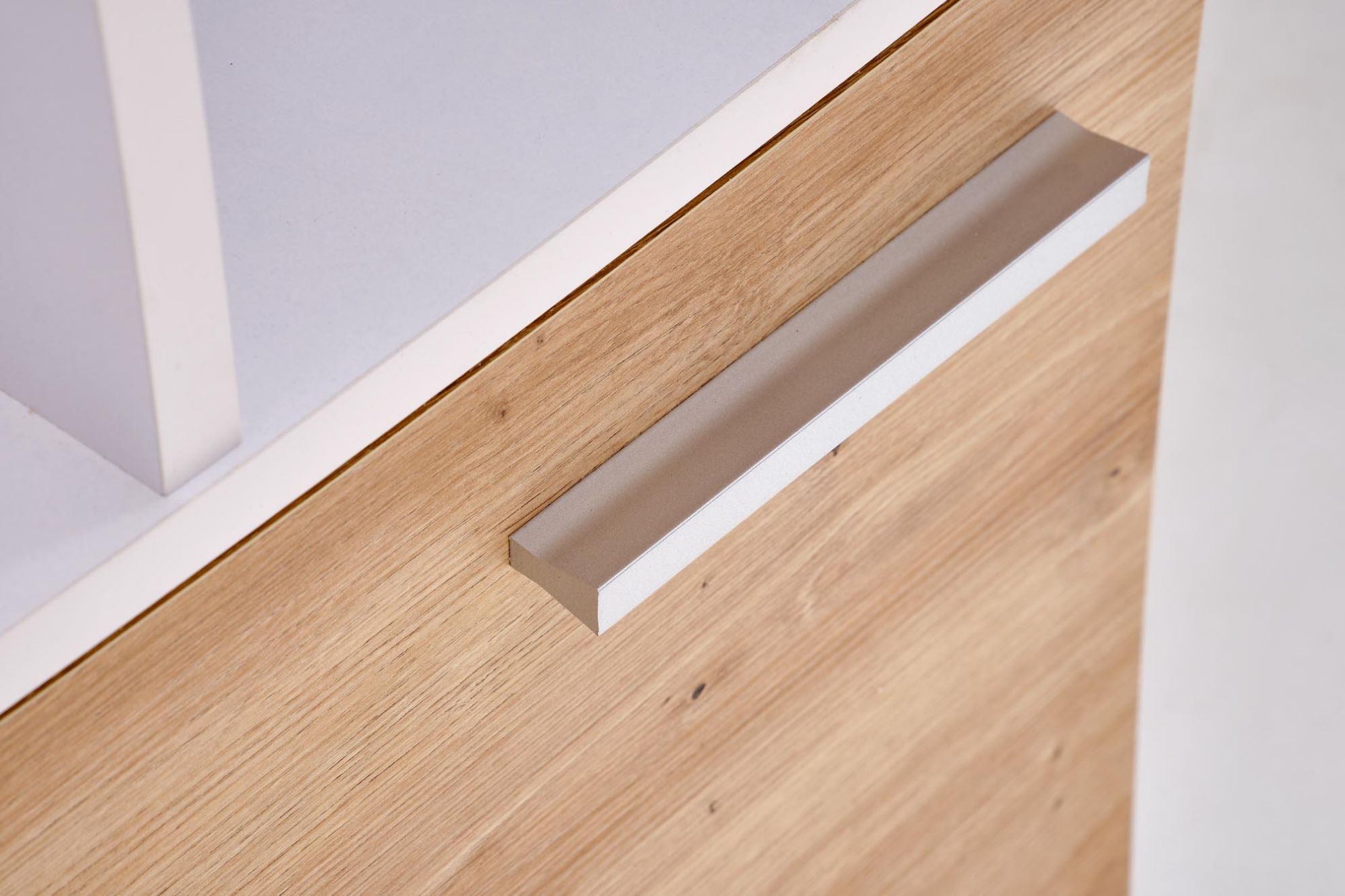 Połączenie bieli i drewna optycznie rozjaśnia wnętrze i wprowadza do niego przyjemną, harmonijną atmosferę. Biurko Axis świetnie sprawdzi się w domowym gabinecie, pokoju młodzieżowym oraz w przestrzeni biurowej.