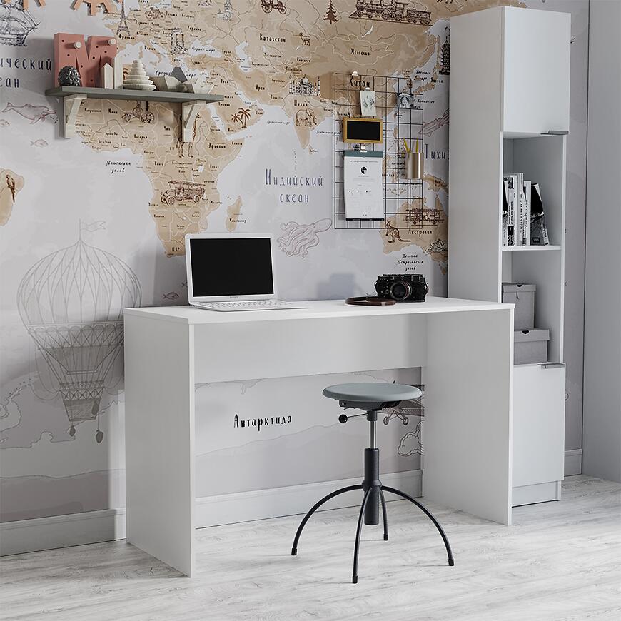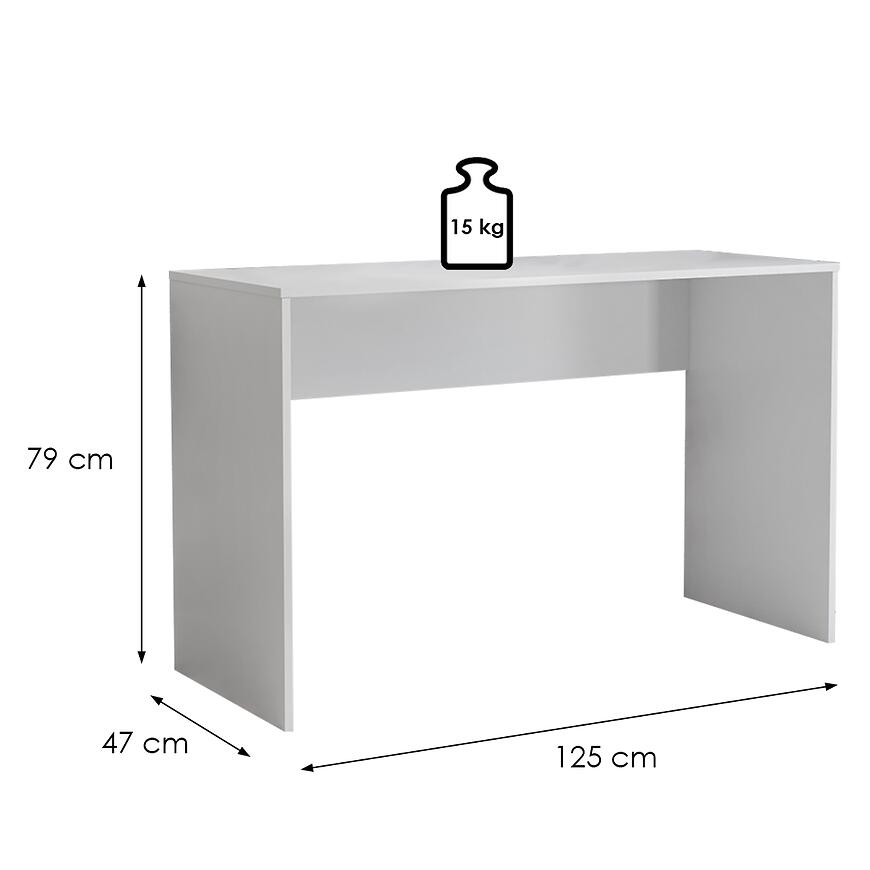 Biurko B3 w kolorze Biały to nowoczesny i funkcjonalny mebel z kolekcji B3. Jego wymiary to 125 cm szerokości, 79 cm wysokości i 47 cm głębokości. Zarówno fronty, jak i korpus wykonano z laminowanej płyty wiórowej o matowym wykończeniu, co zapewnia elegancki i minimalistyczny wygląd. Biurko ma uniwersalną orientację, nie posiada szuflad ani drzwi, waży 20 kg i wymaga samodzielnego montażu.