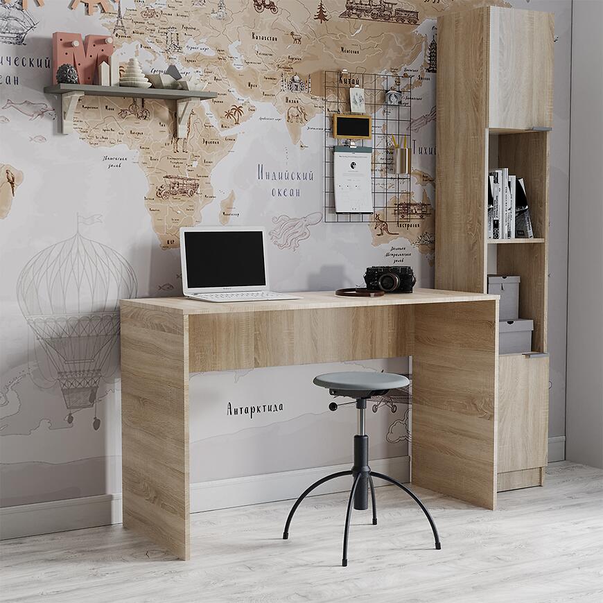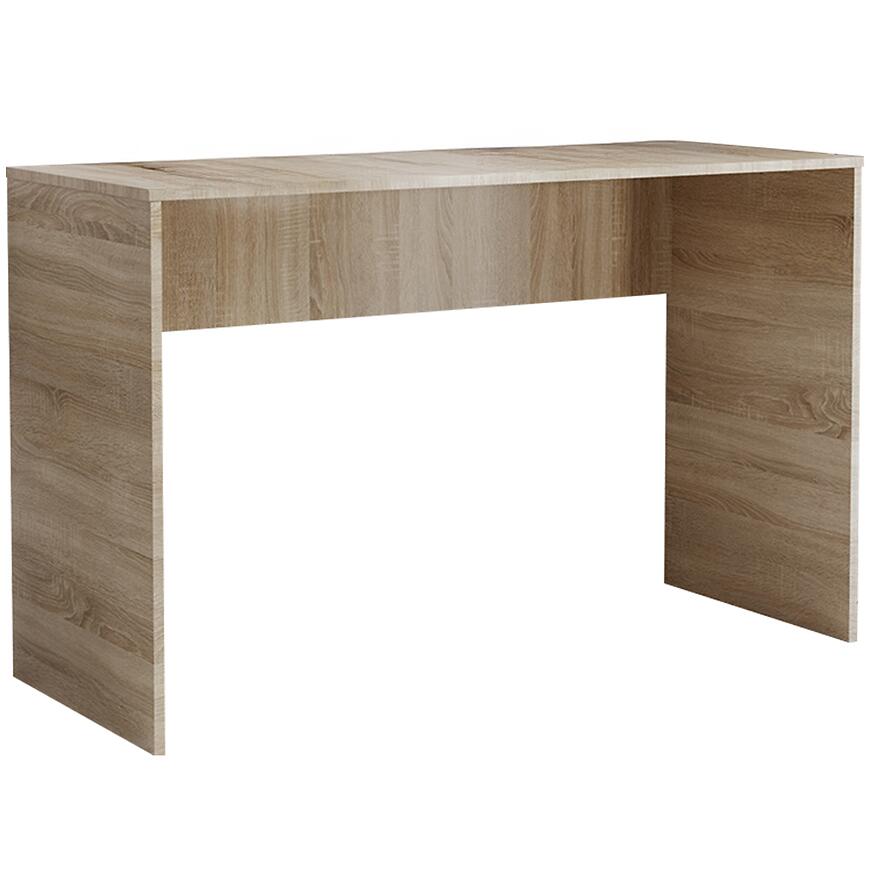 Biurko B3 w kolorze Dąb Sonoma to nowoczesny i praktyczny mebel z kolekcji B3. Jego wymiary wynoszą 125 cm szerokości, 79 cm wysokości i 47 cm głębokości. Zarówno fronty, jak i korpus wykonano z laminowanej płyty wiórowej o matowym wykończeniu, co nadaje meblowi elegancki, jasny, drewnopodobny wygląd. Biurko ma uniwersalną orientację, nie posiada szuflad ani drzwi, waży 20 kg i wymaga samodzielnego montażu.