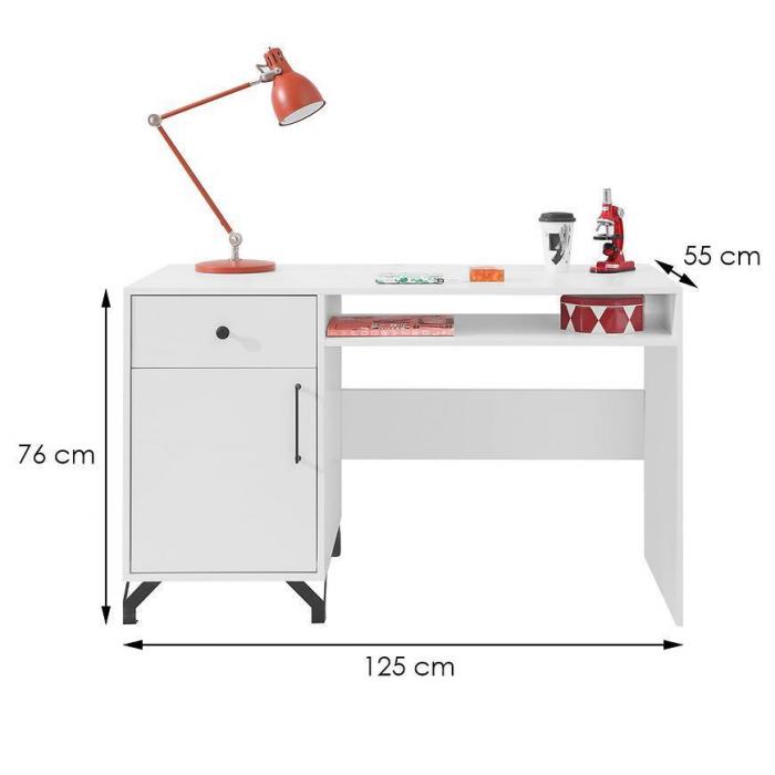Biurko z kolekcji Bergen sprawdzi sie w pokoju młodzieżowym w nowoczesnym wydaniu. Meble wykonane sa z płyty wiórowej laminowanej. Meble o stabilnej kontrukcji, wykończone są z najwyższą starannością. Z pewnością będą cieszyć oko mimo biegnącego czasu. Nowoczesne biurko bedzie idealne na książki, zeszyty, dokumenty.