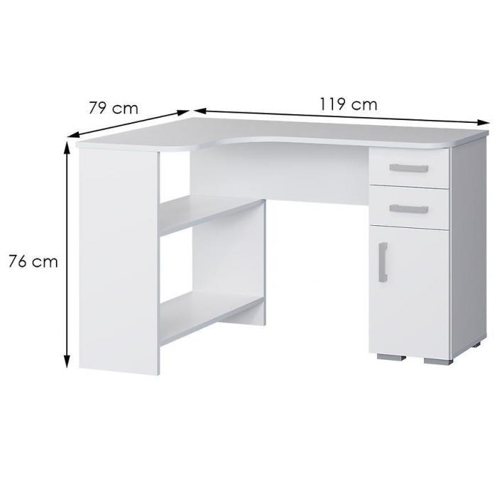Meble zostały wykonane z płyty wiórowej laminowanej w kolorze białym. Dzięki swojej klasycznej kolorystyce, będą pasowały do każdego wnętrza. Nowoczesny styl mebli wpadnie do gustu każdemu, kto poszukuje eleganckiego, klasycznego, a zarazem nowoczesnego umeblowania. Orientacja biurka: prawostronna.