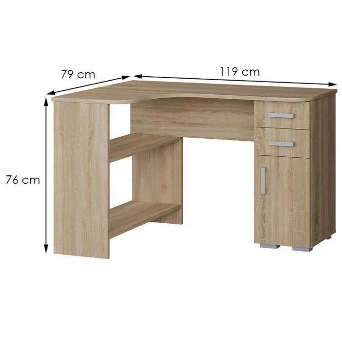 Meble zostały wykonane z płyty wiórowej laminowanej w kolorze dąb sonoma. Dzięki swojej klasycznej kolorystyce, będą pasowały do każdego wnętrza. Nowoczesny styl mebli wpadnie do gustu każdemu, kto poszukuje eleganckiego, klasycznego, a zarazem nowoczesnego umeblowania. Orientacja biurka: prawostronna.