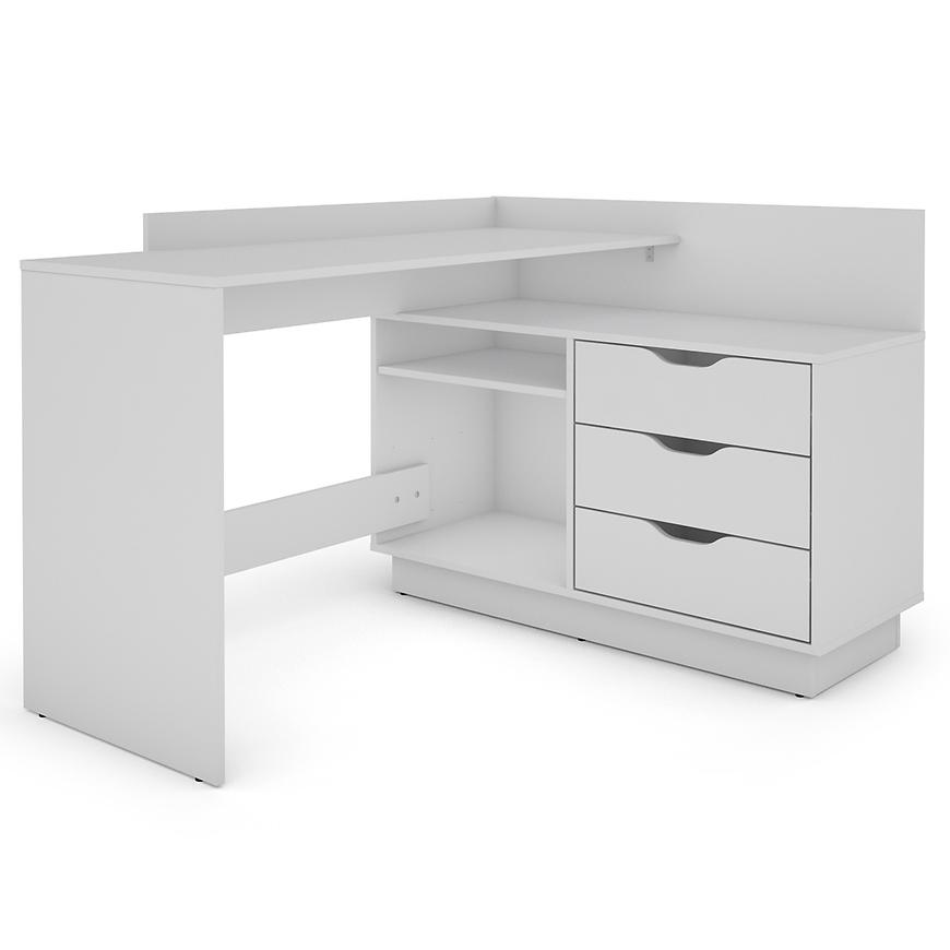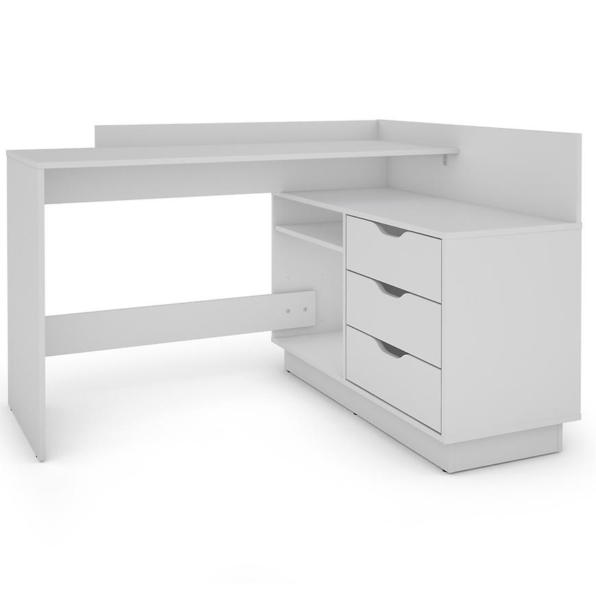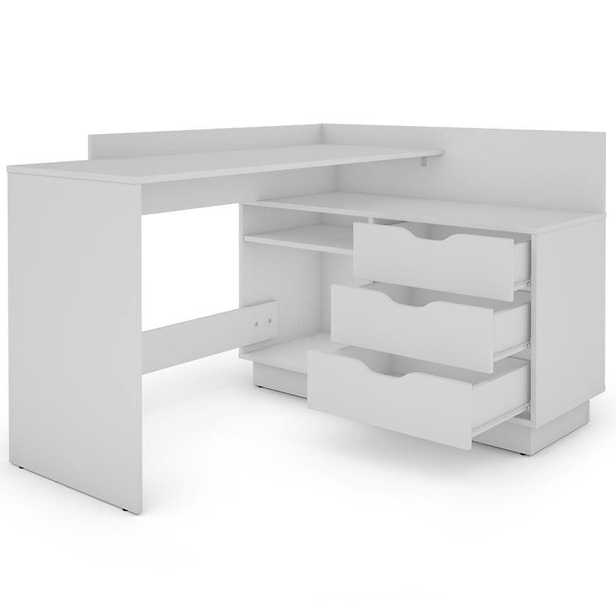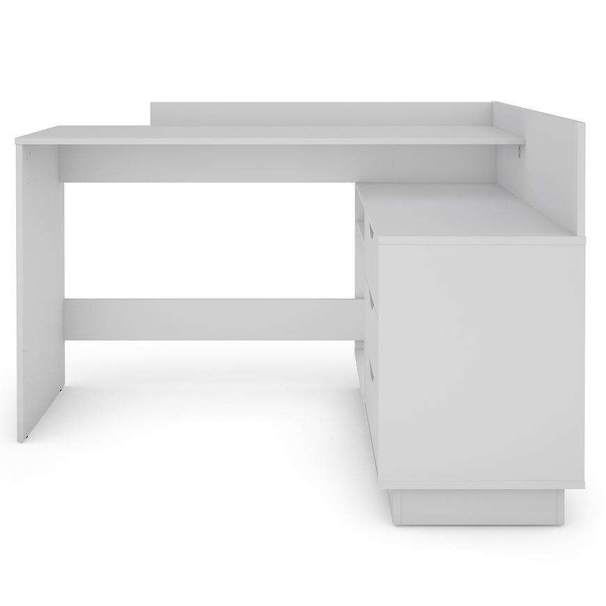Biurko charakteryzuje się uniwersalną orientacją, co oznacza, że można je z łatwością dopasować do każdego rodzaju wnętrza oraz indywidualnych potrzeb użytkownika. Zarówno fronty, jak i korpus biurka wykonane są z wysokiej jakości płyty wiórowej laminowanej, co zapewnia wytrzymałość, stabilność oraz długą żywotność mebla. Białe wybarwienie biurka dodaje mu nowoczesnego, minimalistycznego wyglądu, a matowe wykończenie zarówno frontów, jak i korpusu sprawia, że mebel prezentuje się elegancko i stylowo, wpisując się w modną estetykę prostoty.