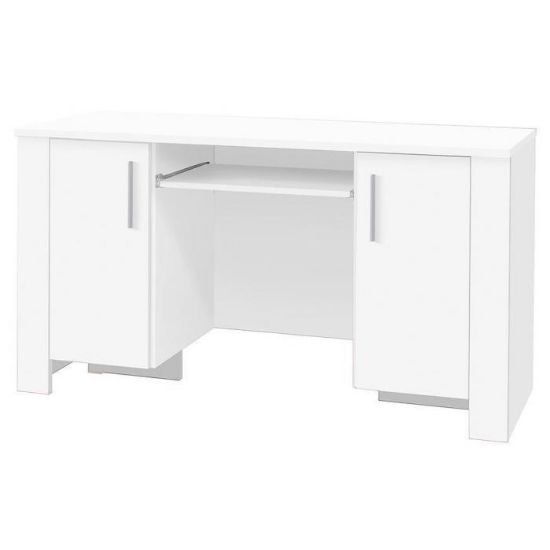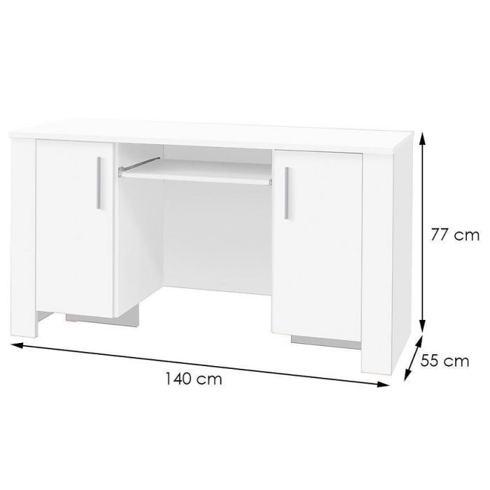 Meble zostały wykonane z płyty wiórowej laminowanej w kolorze białym mat. Dzięki swojej klasycznej kolorystyce, będą pasowały do każdego wnętrza. Nowoczesny styl mebli wpadnie do gustu każdemu, kto poszukuje eleganckiego, klasycznego umeblowania. Orientacja biurka: uniwersalna.