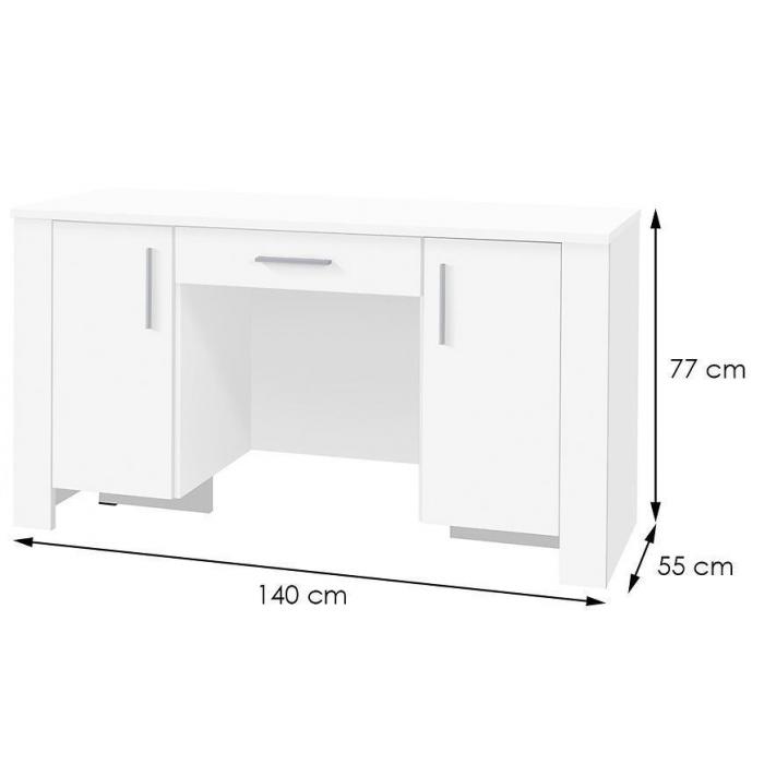 Meble zostały wykonane z płyty wiórowej laminowanej w kolorze białym mat. Dzięki swojej klasycznej kolorystyce, będą pasowały do każdego wnętrza. Nowoczesny styl mebli wpadnie do gustu każdemu, kto poszukuje eleganckiego, klasycznego umeblowania. Orientacja biurka: uniwersalna.