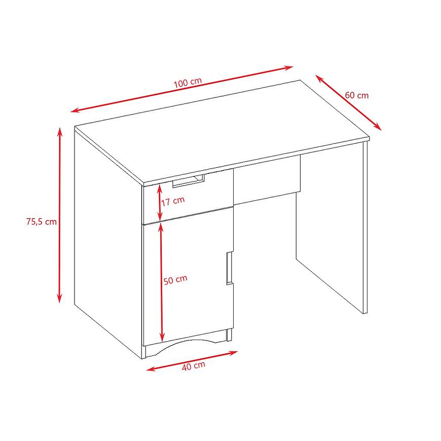 Biurko o wymiarach 100 cm x 60 cm zapewnia komfortową przestrzeń do pracy, jednocześnie nie zajmując zbyt wiele miejsca. Jego wysokość wynosząca 75,5 cm stwarza ergonomiczne warunki, co sprzyja wygodnej pracy przy komputerze czy dokumentach.