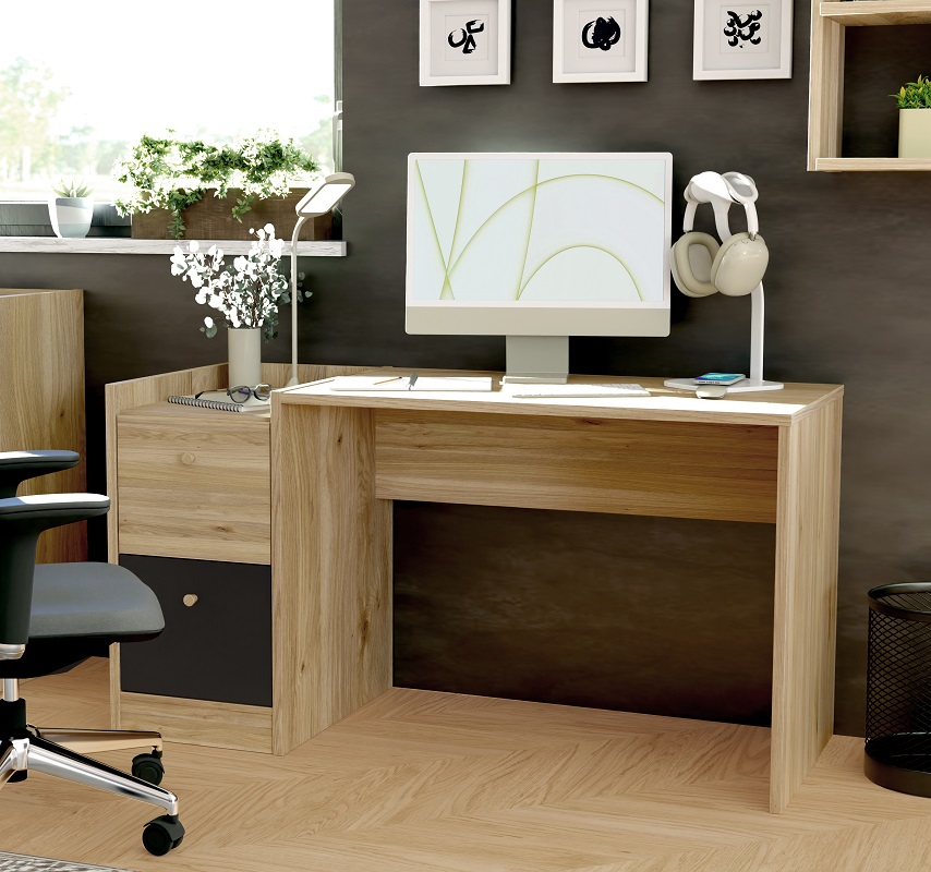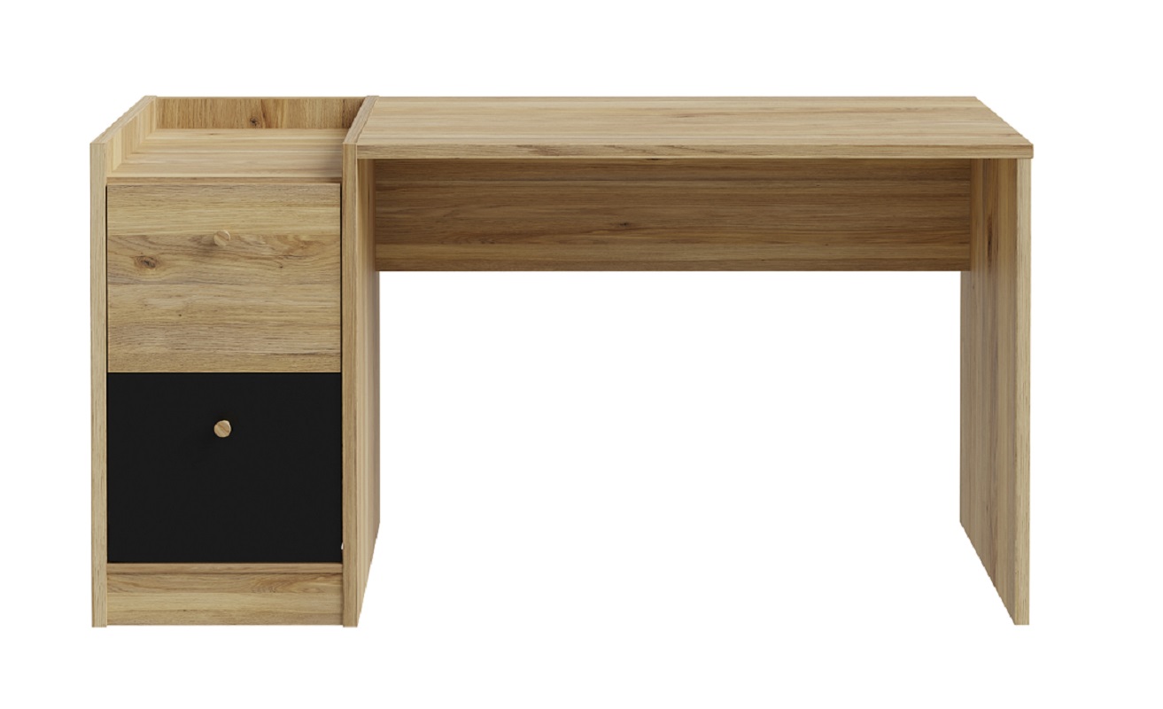 Biurko z szufladami Coxim CXMB121L to idealne rozwiązanie dla każdego młodego ucznia czy studenta, łączące funkcjonalność z nowoczesnym designem. Wykonane z wysokiej jakości płyty meblowej, biurko cechuje się trwałością i estetyką, która doskonale wpisuje się w nowoczesne aranżacje wnętrz młodzieżowych. Dekor w odcieniu dąb mauvella, uzupełniony stylowymi czarnymi elementami, nadaje meblowi elegancki i jednocześnie przytulny charakter.