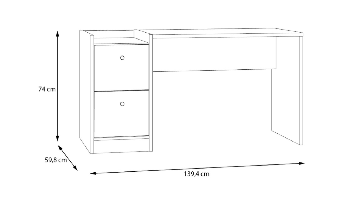 Jednym z kluczowych atutów biurka Coxim CXMB121L są dwie praktyczne szuflady, które oferują mnóstwo miejsca na przechowywanie niezbędnych przedmiotów, takich jak przybory szkolne, zeszyty, książki czy inne akcesoria. Szuflady te zapewniają porządek na blacie, umożliwiając utrzymanie przestrzeni roboczej w czystości i uporządkowaniu. Drewniane uchwyty szuflad dodają biurku naturalnego i ciepłego wyglądu, harmonizując z całością mebla i podkreślając jego nowoczesny design.