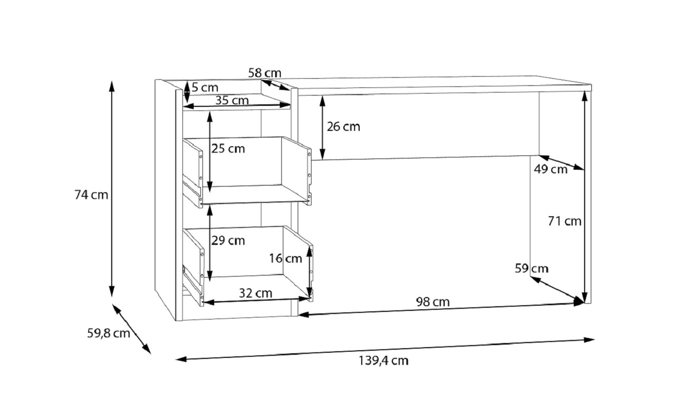 Blat biurka jest wystarczająco szeroki, aby pomieścić laptop, książki, notatki i inne materiały niezbędne do nauki czy pracy. Ergonomiczna wysokość biurka zapewnia komfort użytkowania, pozwalając na wygodną i zdrową pozycję podczas długich godzin spędzonych na nauce czy pracy kreatywnej. Solidna konstrukcja biurka gwarantuje stabilność i wytrzymałość, co jest szczególnie ważne w przypadku intensywnego użytkowania przez młodzież.
