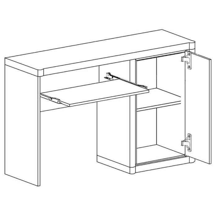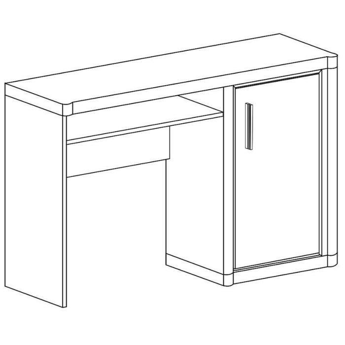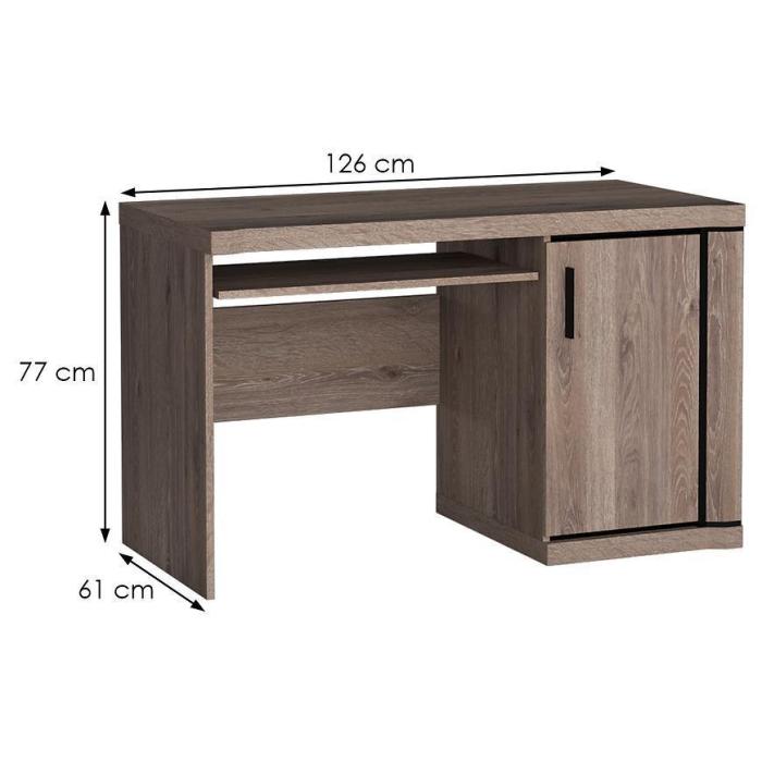 Biurko Dallas D13 w kolorze dąb truflowy idealnie sprawdzi się w biurze, pokoju młodzieżowym czy w innym, dowolnym pomieszczeniu. Posiada dużo miejsca na blacie. Wyposażone zostało w półkę na klawiaturę oraz pojemną szafkę. Dodatkowe czarne elementy nadadzą nowoczesny styl wnętrzu. Całość została wykonana z płyty wiórowej laminowanej.