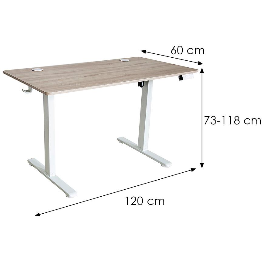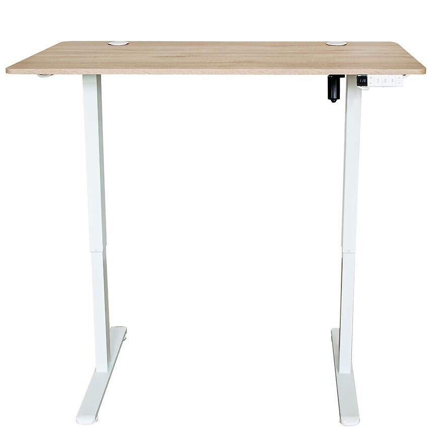Biurko elektryczne Seville 12531 łączy funkcjonalność z nowoczesnym designem. Jasne wybarwienie sonoma w zestawieniu z białymi elementami tworzy elegancki i uniwersalny mebel, który sprawdzi się w domowym gabinecie, biurze lub pokoju do nauki.