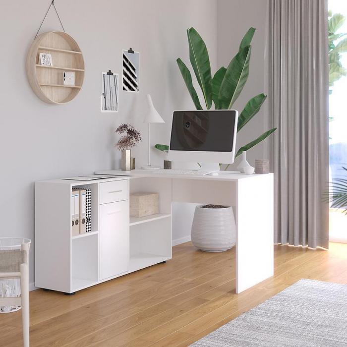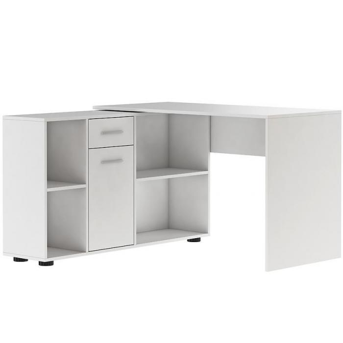Biurko w nowoczesnym stylu, które wpasuje się w klasyczne i nowoczesne wnętrza. Wykonane z płyty wiórowej laminowanej. Posiada miejsce do przechowywanie niezbędnych produktów biurowych lub szkolnych.