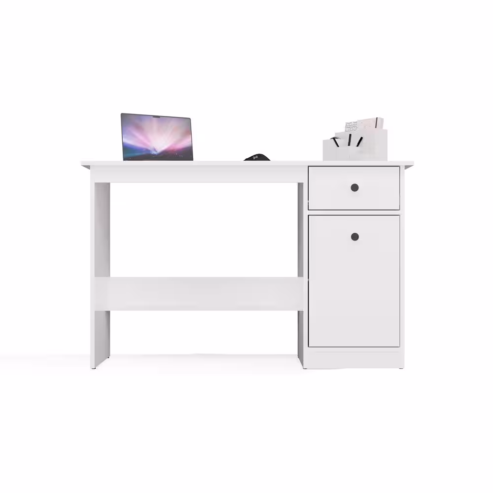 Biurko Estera 120 w kolorze białym to praktyczne i estetyczne rozwiązanie dla osób szukających wygodnego miejsca do pracy lub nauki. Dzięki kompaktowym wymiarom i przemyślanemu układowi doskonale sprawdzi się zarówno jako biurko komputerowe do domowego biura, jak i biurko dla ucznia. Prosta forma i uniwersalny design sprawiają, że łatwo dopasujesz je do różnych aranżacji wnętrz – od nowoczesnych po klasyczne.