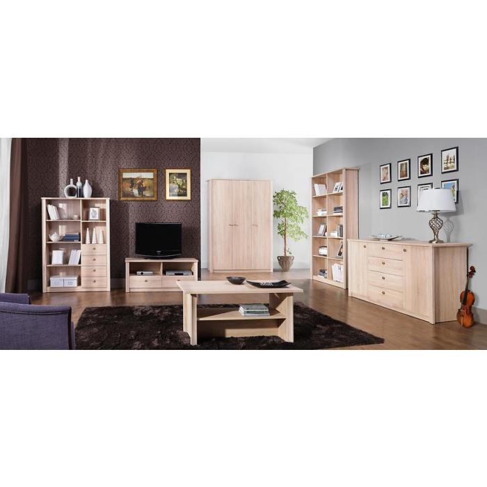 System składający się z solidnych i nowoczesnych mebli w dekorze dąb sonoma. Finezja, dzięki dużej ilości elementów, doskonale sprawdzi się zarówno w pokoju dziennym, jak i w sypialni czy pokoju młodzieżowym. System nawiązuje do najnowszych trendów w projektowaniu wnętrz.Meble z systemu Finezja cechuje wysoka jakość wykonania, proste formy brył oraz oryginalna kolorystyka, która przyczyni się do tego, że Wasze wnętrze będzie naprawdę wyjątkowe. Dzięki bogatej ofercie elementów będą mogli Państwo tworzyć rozmaite kompozycje pasujące niemal do każdego pomieszczenia. Meble wykonane z płyty laminowanej, krawędzie zabezpieczone obrzeżem ABS. Ozdobna listwa profilowa. Prezentowane przez Nas meble cechuje wysoka jakość oraz atrakcyjne ceny. Nasze produkty są nowe, zapakowane w paczkach do samodzielnego montażu.