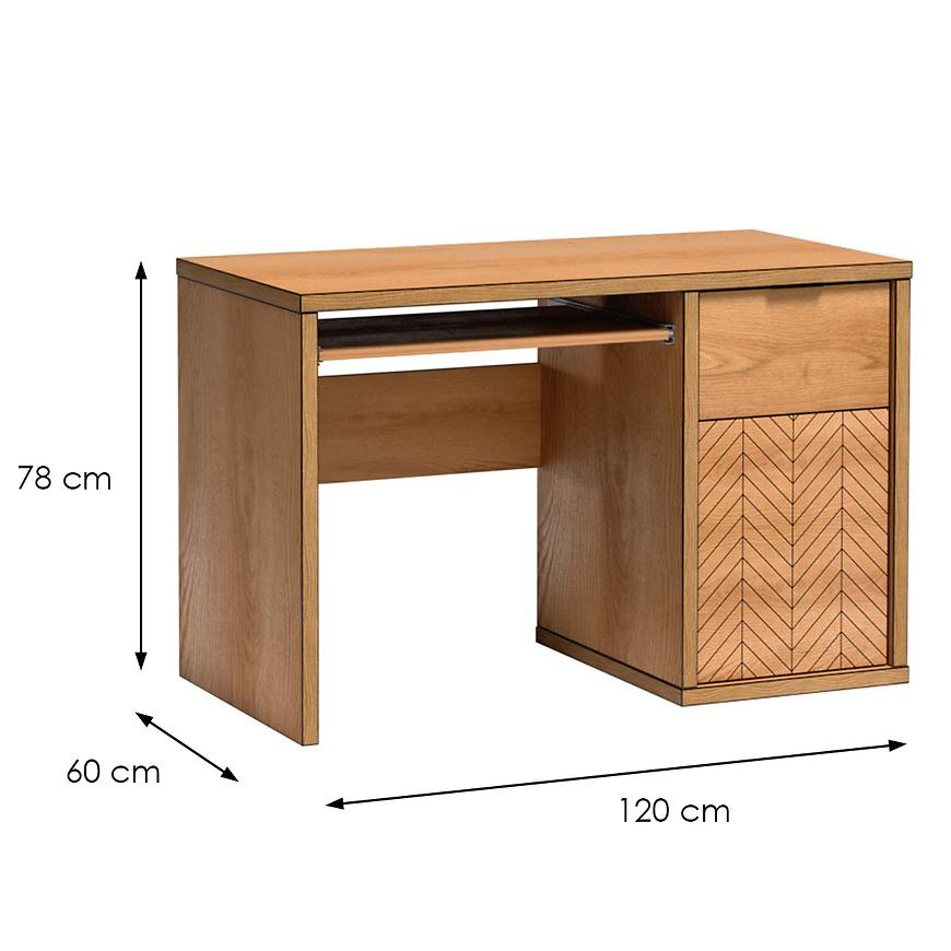 Biurko Fonti F14 w kolorze Dąb Karmel to połączenie funkcjonalności, elegancji i nowoczesnego designu. Biurko o wymiarach 78 cm wysokości, 120 cm szerokości i 60 cm głębokości, to mebel, który doskonale wpisuje się w różnorodne przestrzenie, zarówno biurowe, jak i domowe.