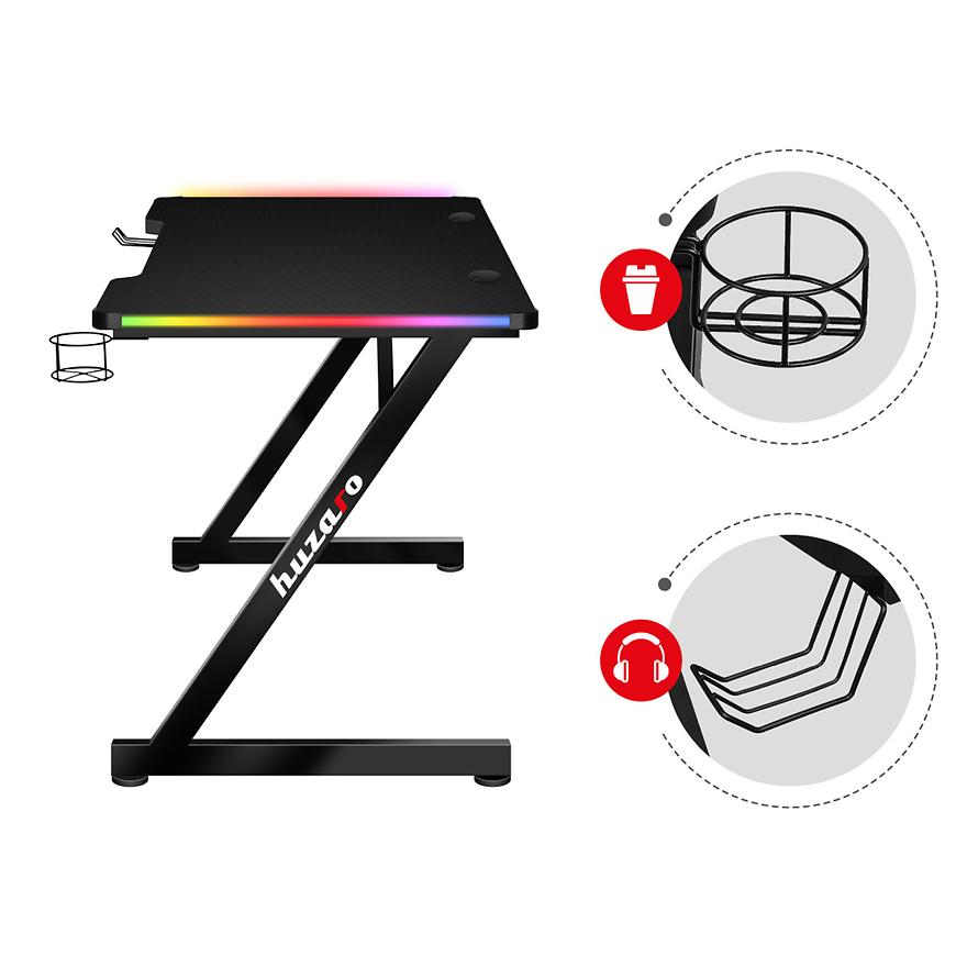 Biurko gamingowe HZ-Hero 2.5 RGB to doskonały wybór dla każdego gracza, który pragnie nie tylko funkcjonalności, ale także efektownego wyglądu. Jego efektowny design, praktyczne rozwiązania, wytrzymałe materiały, stabilna konstrukcja i oświetlenie RGB LED sprawiają, że praca i rozgrywka stają się jeszcze bardziej satysfakcjonujące i wciągające.