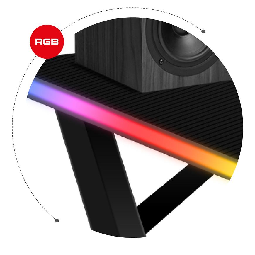 Biurko gamingowe HZ-Hero 2.5 RGB to połączenie efektownego designu z praktycznymi rozwiązaniami, które zachwycą każdego pasjonata gier. Oświetlenie RGB LED z setkami efektów świetlnych nadaje biurku niepowtarzalny wygląd i atmosferę. Wygodny pilot do sterowania oświetleniem umożliwia łatwą personalizację i dostosowanie świetlnych efektów do swoich upodobań.