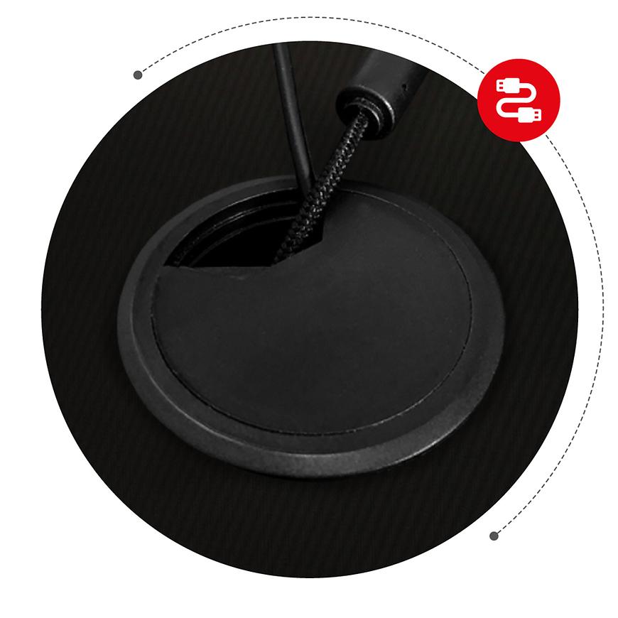 Biurko gamingowe HZ-Hero 2.5 RGB oferuje także hub USB w ergonomicznym miejscu, umożliwiający łatwy dostęp do portów USB i wygodne podłączanie urządzeń.