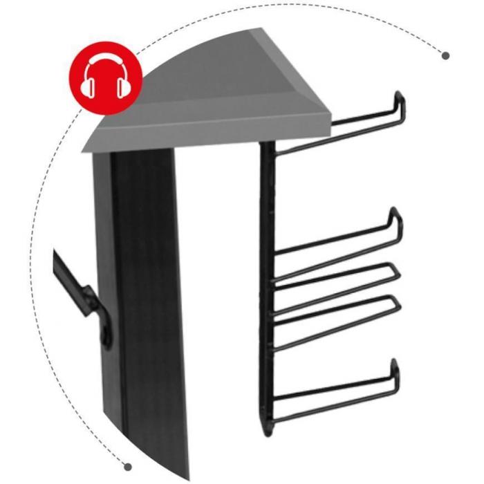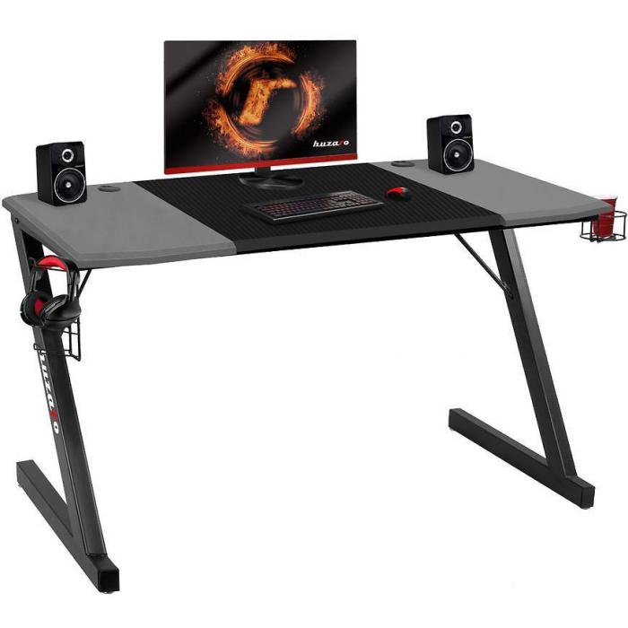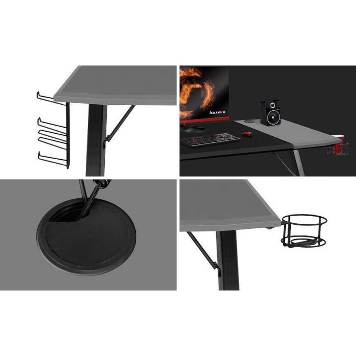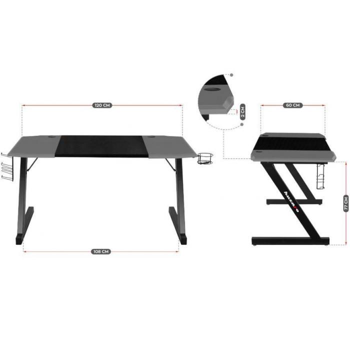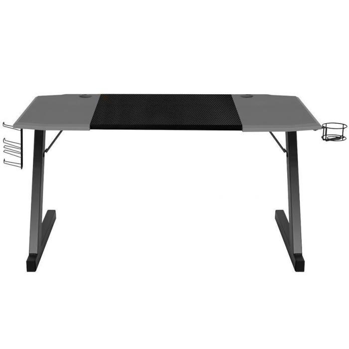 Biurko Gamingowe to idealny, a zarazem podstawowy element wyposażenia pokoju gracza i fanów najnowszych technologii. Biurko wykonano z wytrzymałego, pokrytego praktycznym, nieścieralnym materiałem-Carbon, grubego blatu z zaokrąglonymi krawędziami, dzięki czemu jest niezwykle trwałe i funkcjonalne. Biurko wyposażone jest w dwa specjalne wloty na przewody oraz uchwyty na słuchawki, kubek, pady i akcesoria. Jest on wykonany ze stabilnej ramy oraz solidnej aluminiowej konstrukcji. Biurko posiada również funkcję regulacji nóżek.