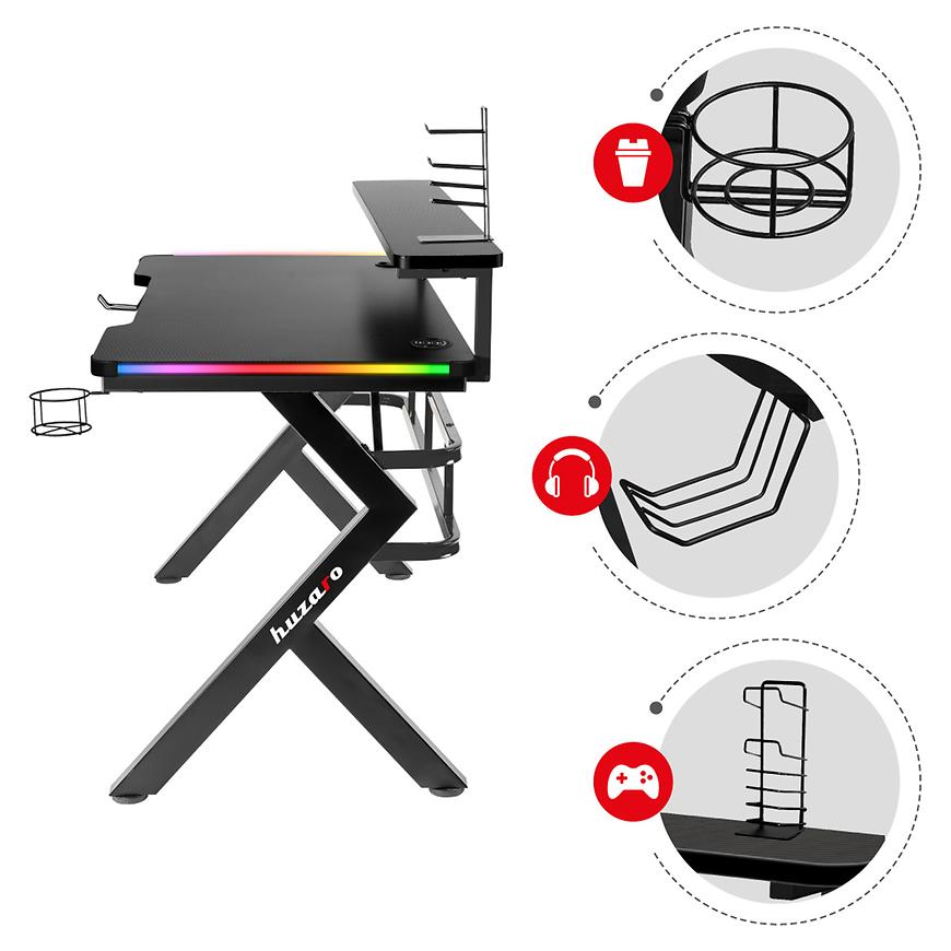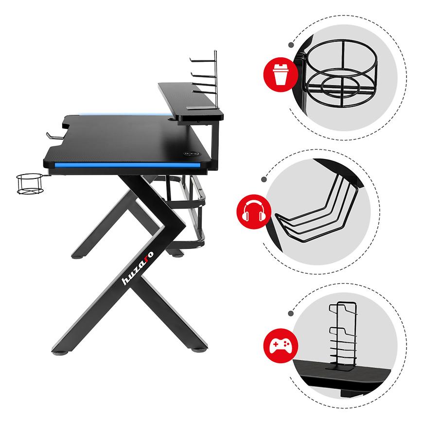 Biurko gamingowe HZ-Hero 5.0 RGB to prawdziwa gratka dla pasjonatów gier, które łączy w sobie innowacyjne oświetlenie i praktyczne rozwiązania. Oświetlenie RGB LED z setkami efektów świetlnych tworzy niepowtarzalną atmosferę i dodaje biurku niesamowitego wyglądu. Wygodny pilot do sterowania oświetleniem pozwala na łatwą personalizację i dostosowanie świetlnych efektów do własnych preferencji.