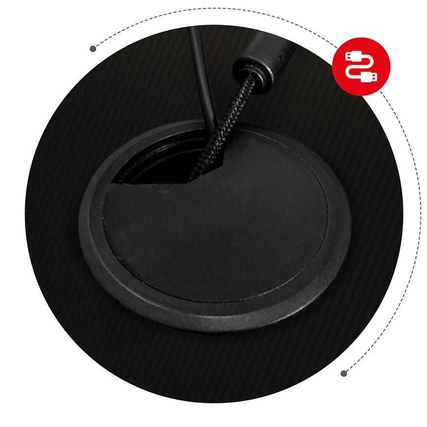 Biurko gamingowe HZ-Hero 7.0 wyposażone jest w uniwersalny wlot na przewody, dzięki czemu możliwe jest schludne i porządne ukrycie kabli, co sprawia, że przestrzeń wygląda schludnie i uporządkowanie. Stabilna rama z aluminiowej konstrukcji i wzmocnione nogi gwarantują solidność i wytrzymałość, pozwalając na pewne i stabilne ustawienie sprzętu gamingowego. Dzięki możliwości dowolnego montażu (lewostronny lub prawostronny), biurko można dostosować do indywidualnych preferencji i układu pomieszczenia.