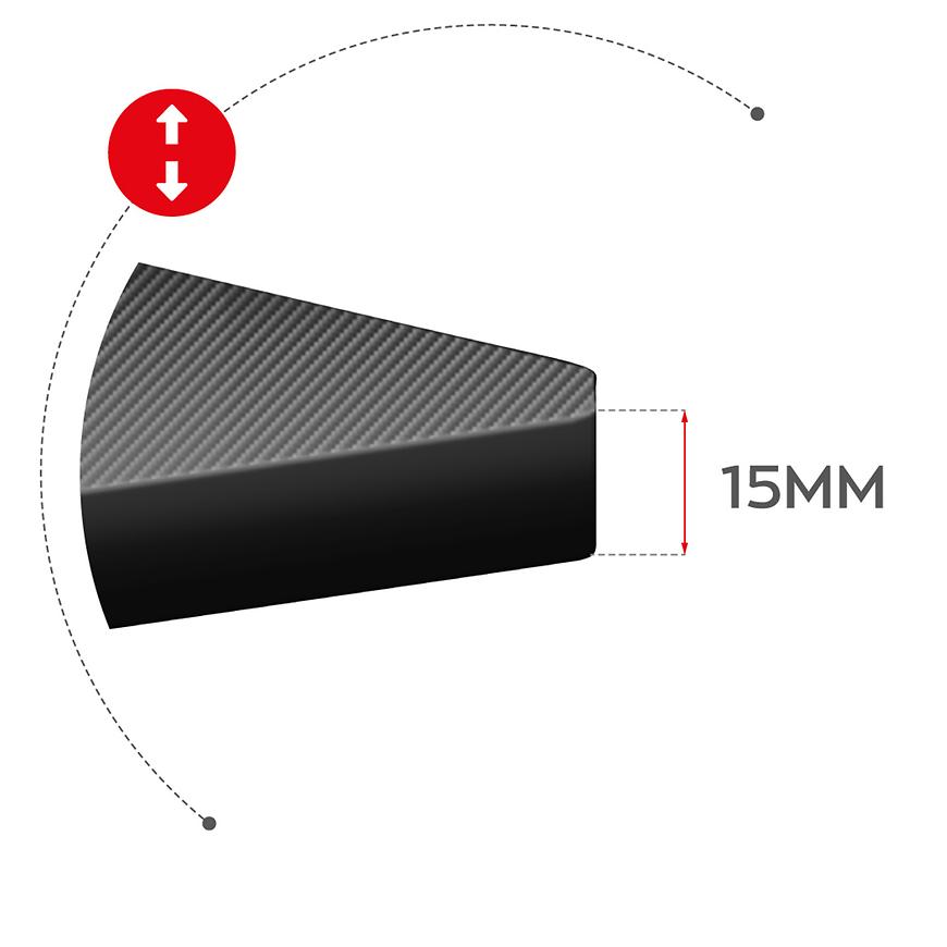 Biurko gamingowe Narożne Hero 7.0 wyróżnia się nowoczesnym i efektownym designem, który dodaje dynamiki i charakteru każdemu pomieszczeniu. Jego powłoka pokryta wytrzymałym materiałem Carbon nie tylko prezentuje się stylowo, ale także jest odporna na ścieranie i uszkodzenia. Gruby i wytrzymały blat biurka z zaokrąglonymi krawędziami zapewnia komfort pracy i rozrywki, pozwalając na swobodne korzystanie z myszki czy klawiatury.