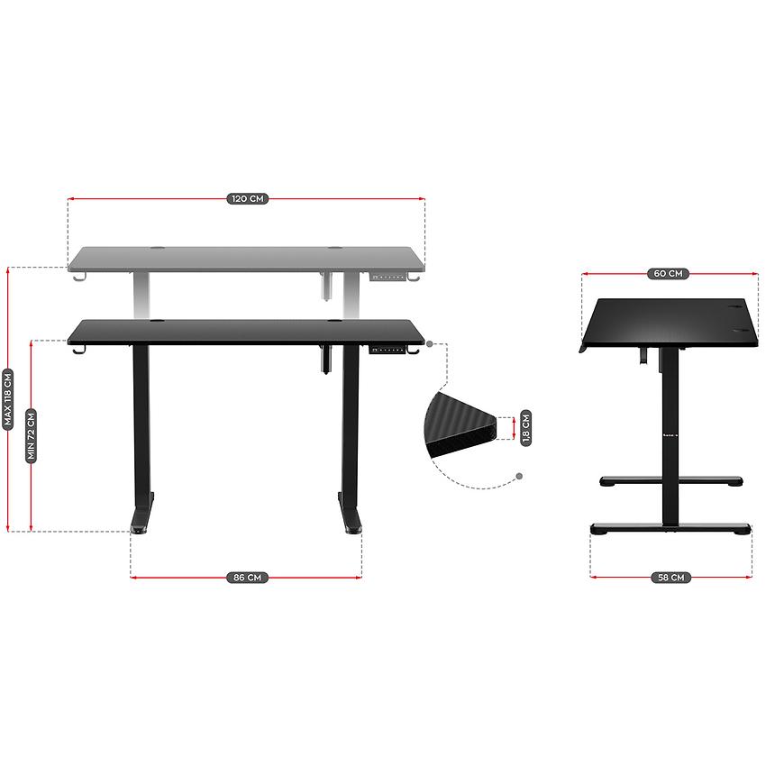 Blat biurka HZ-Hero 8.2 black oferuje regulację wysokości w szerokim zakresie, od 72 cm do aż 118 cm. Dzięki temu masz możliwość dostosowania biurka do swojej idealnej pozycji, zapewniając sobie wygodę i ergonomiczne warunki pracy lub grania.