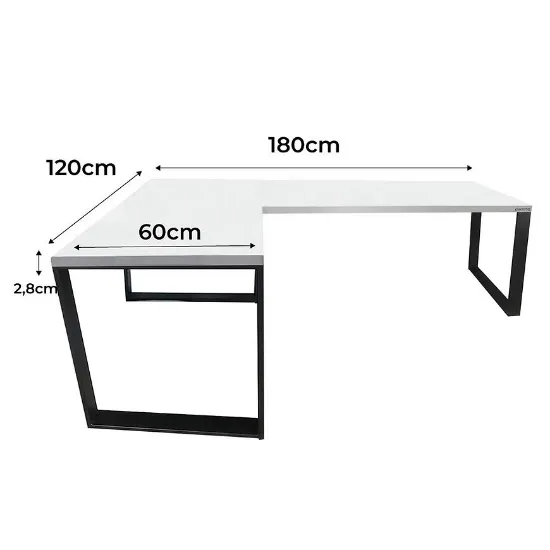 Biurko Gamingowe Narożne Loft Low Białe 180x120x2.8 Model 0